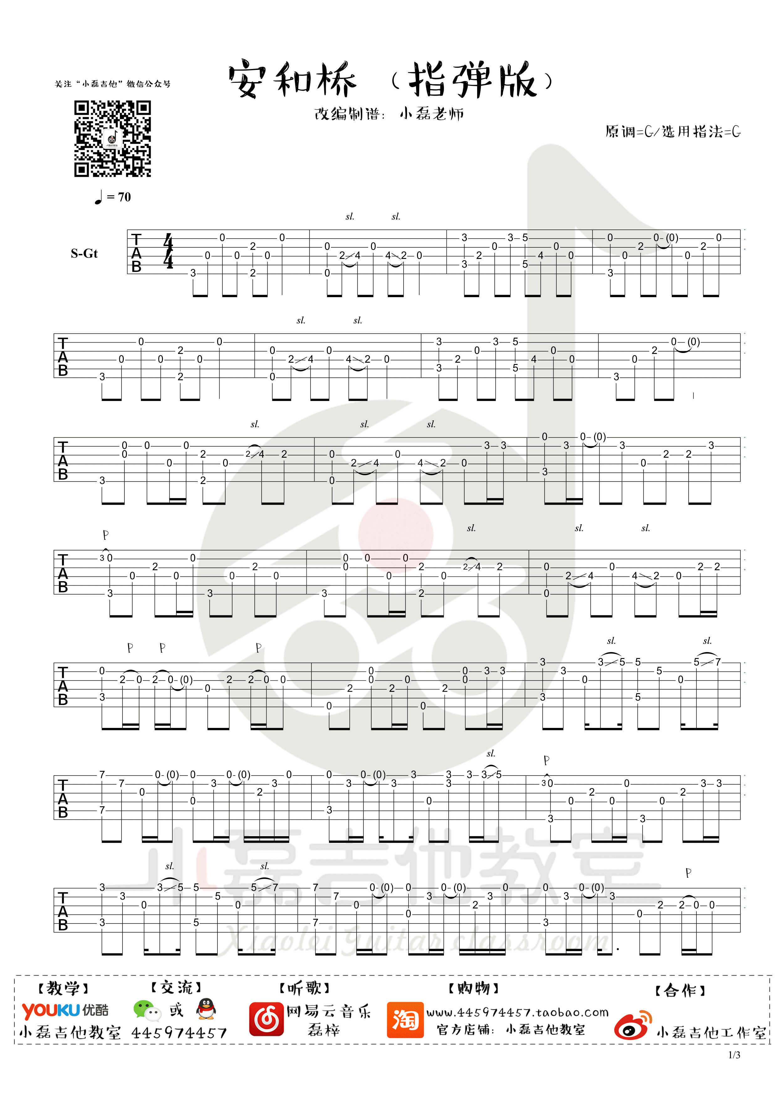 曲谱介绍: 宋冬野《安和桥》吉他独奏谱,共有3张高清图谱。