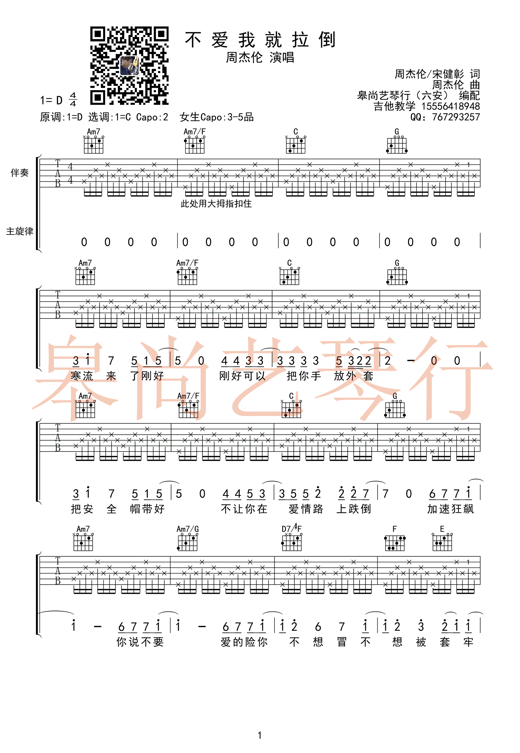 不爱我就拉倒吉他谱 - 周杰伦 - D调吉他弹唱谱