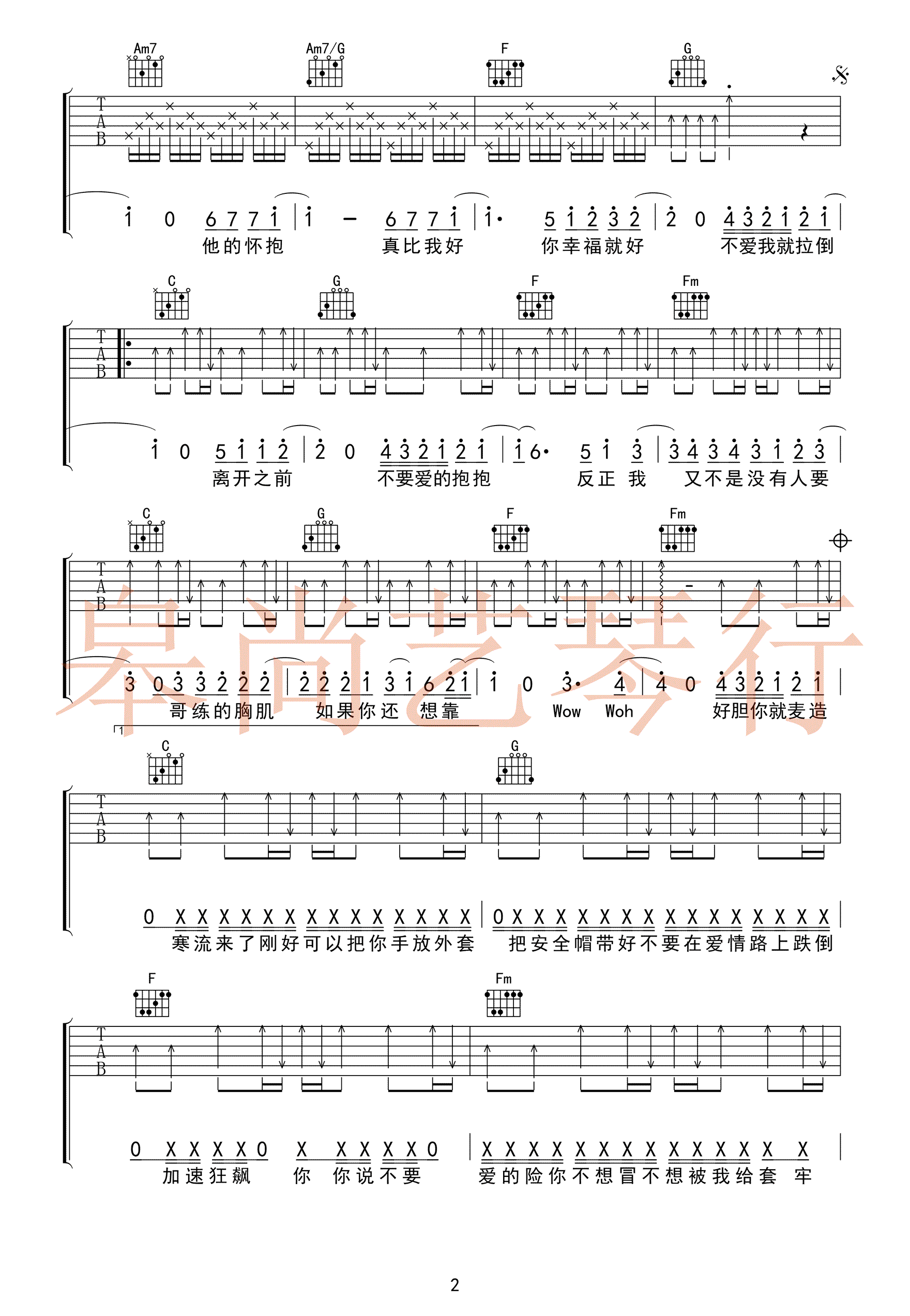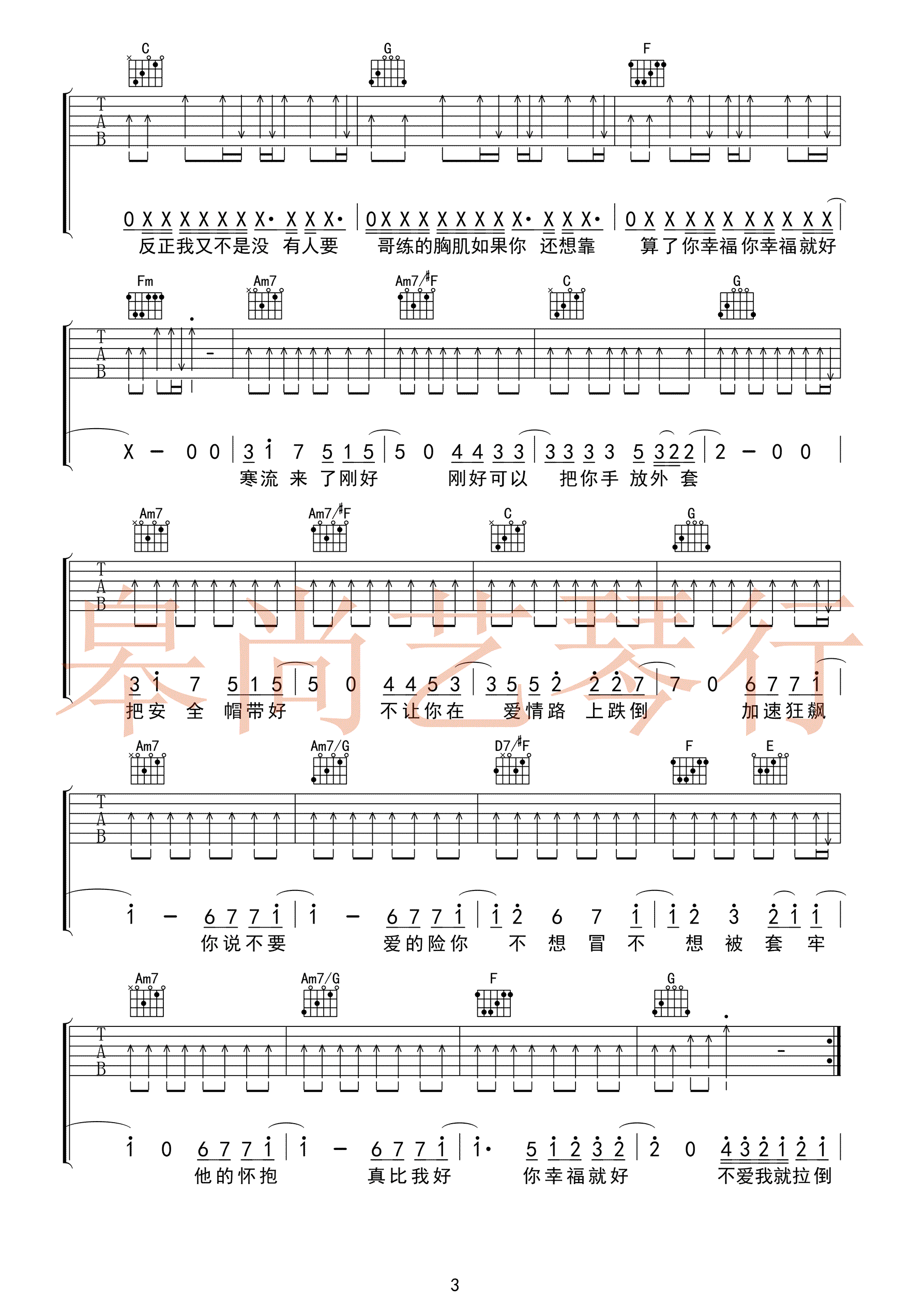 曲谱介绍: 周杰伦《不爱我就拉倒》吉他弹唱谱,采用D调指法编配,共有4张高清图谱。