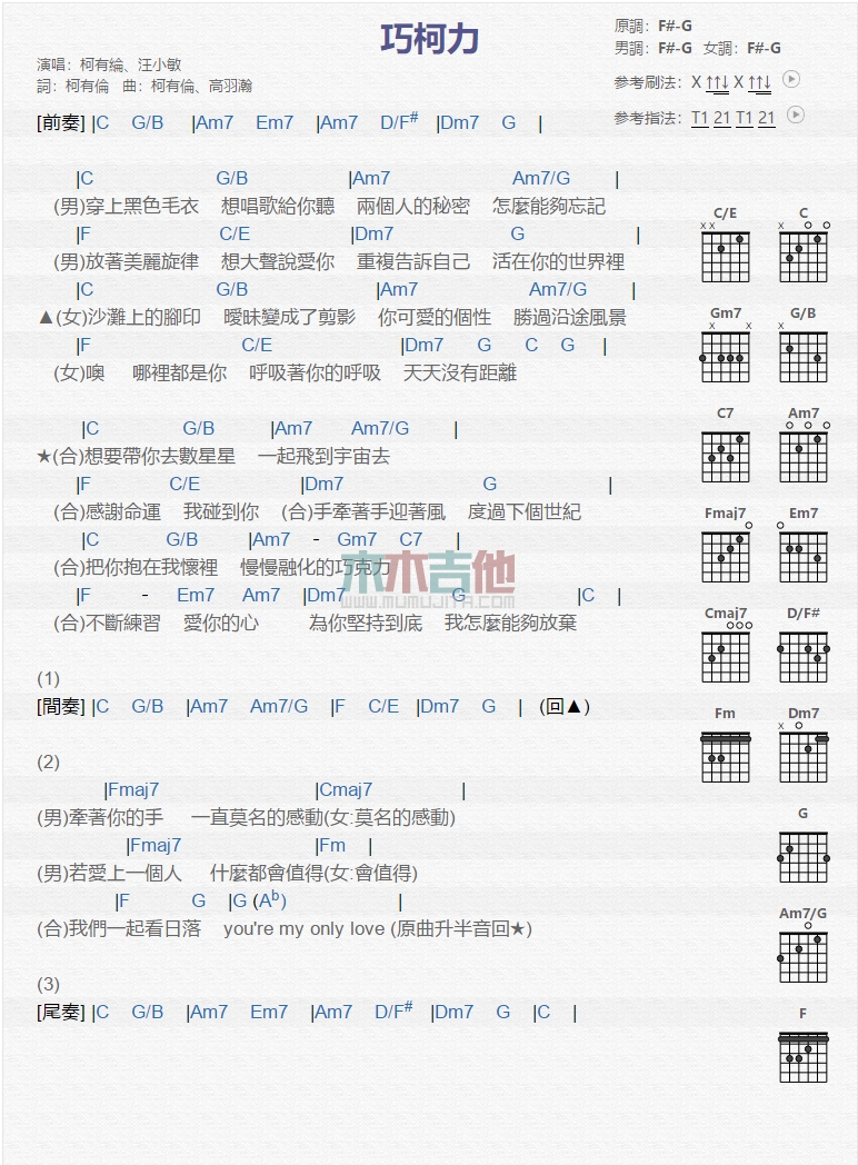 当前位置:琴谱网>吉他弹唱>巧柯力