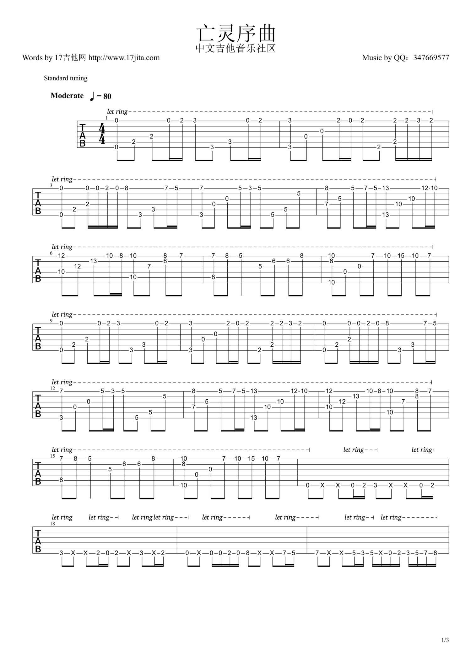 曲谱介绍: 《亡灵序曲》吉他谱_电吉他谱