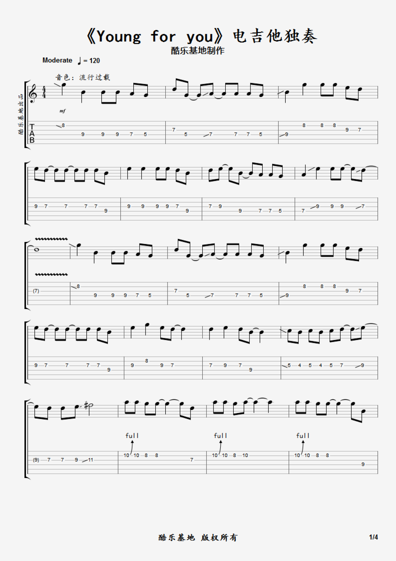 曲谱介绍: 《young for you》吉他谱_电吉他谱
