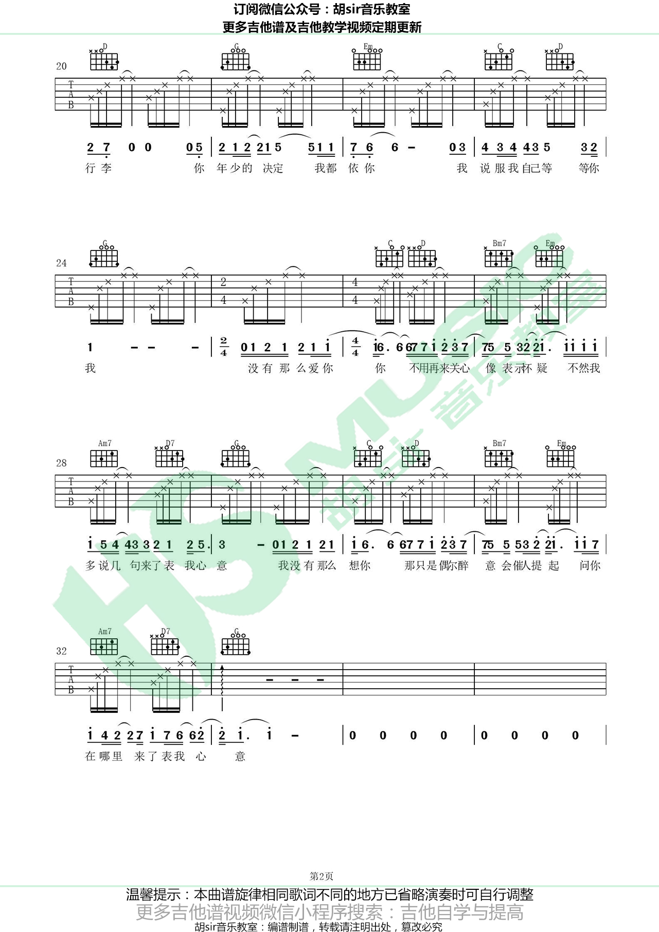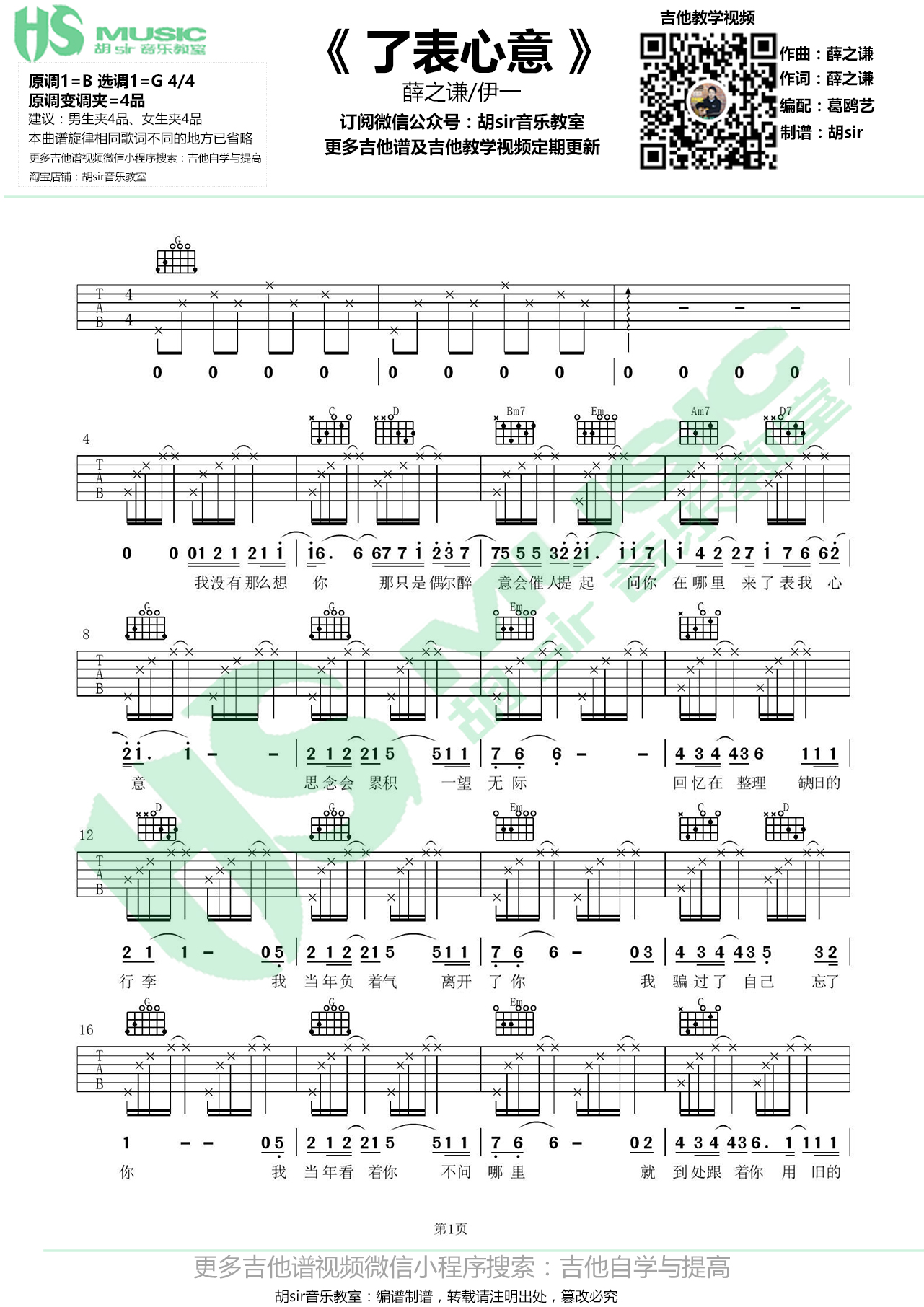 曲谱介绍: 薛之谦,伊一《了表心意》吉他弹唱谱,采用G调指法编配,共有2张高清图谱,免翻页排版设计。