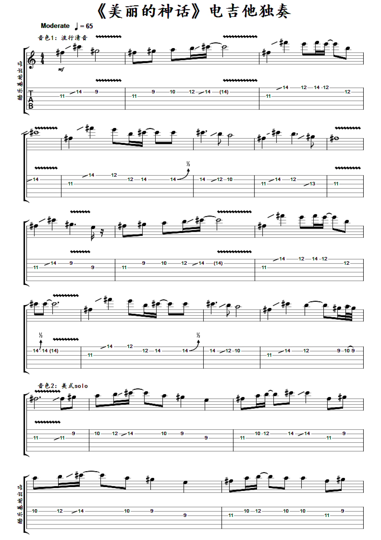 曲谱介绍: 成龙《美丽的神话》吉他谱_电吉他谱