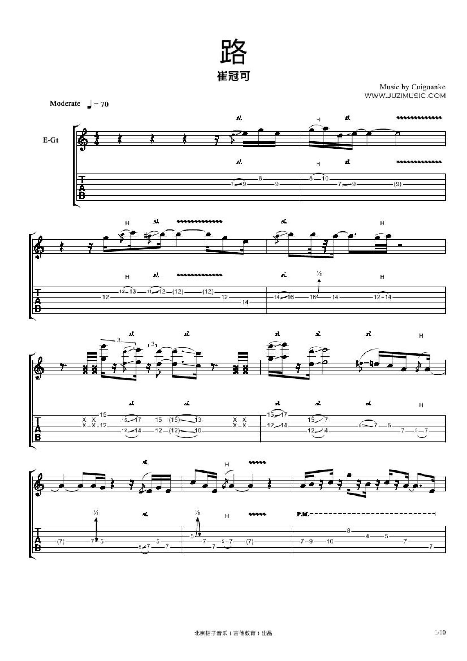 曲谱介绍: 崔冠可《路》吉他谱_电吉他谱