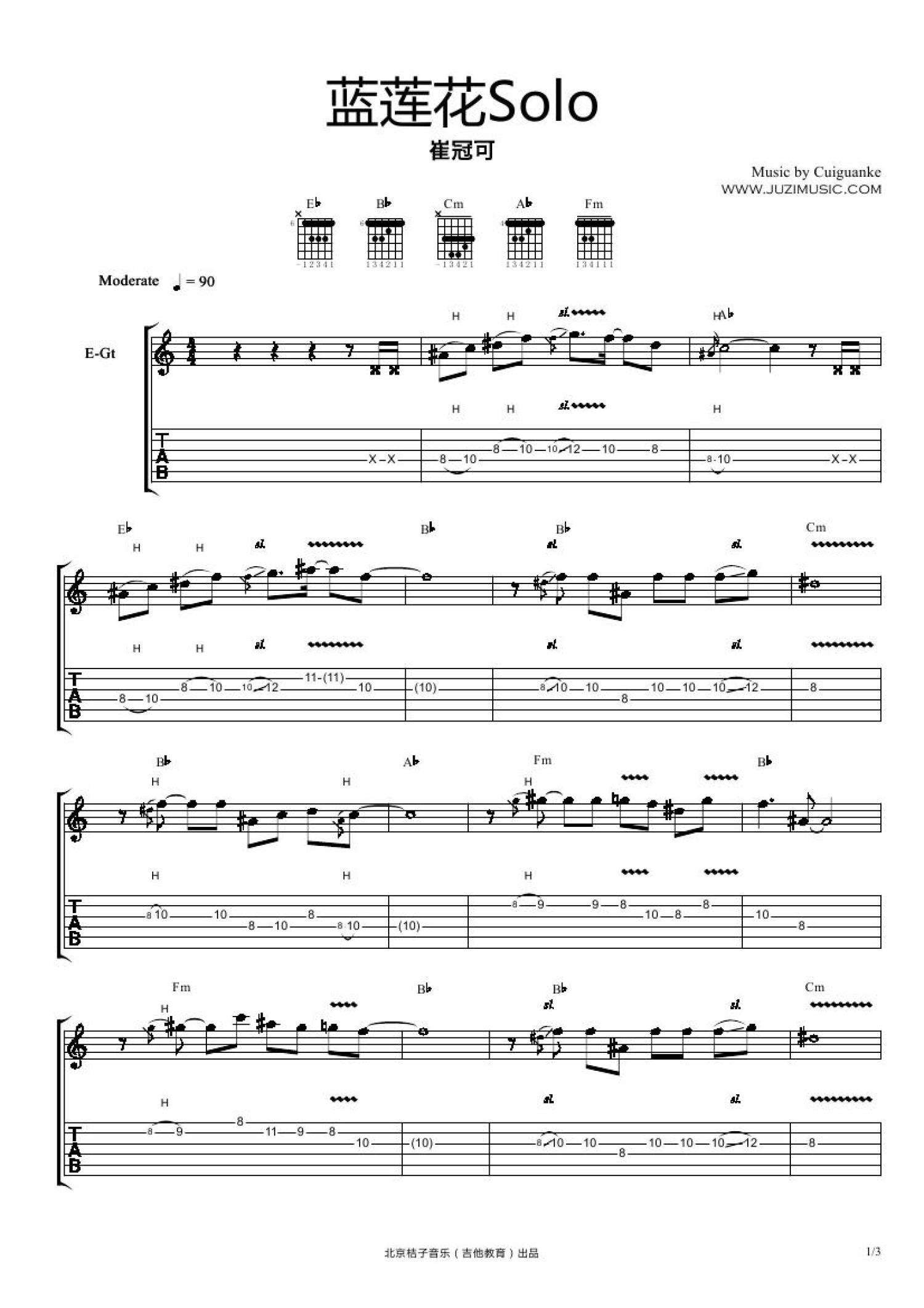 曲谱介绍: 崔冠可《蓝莲花Solo》吉他谱_电吉他谱
