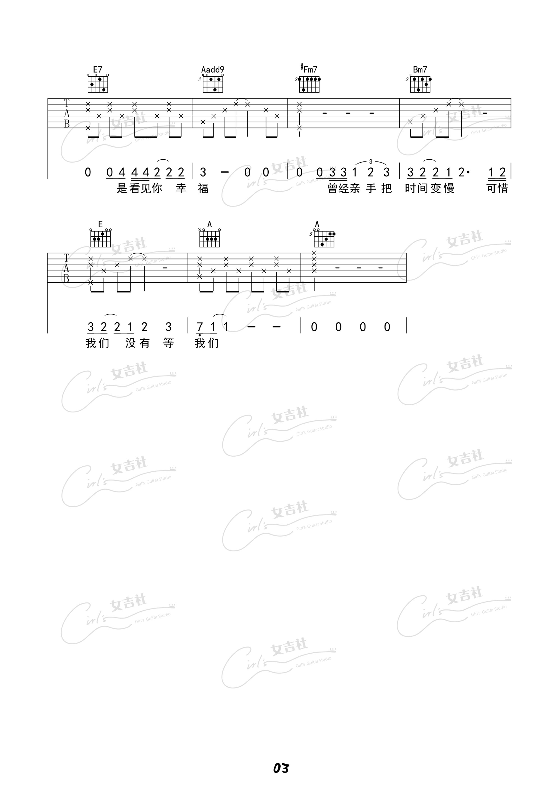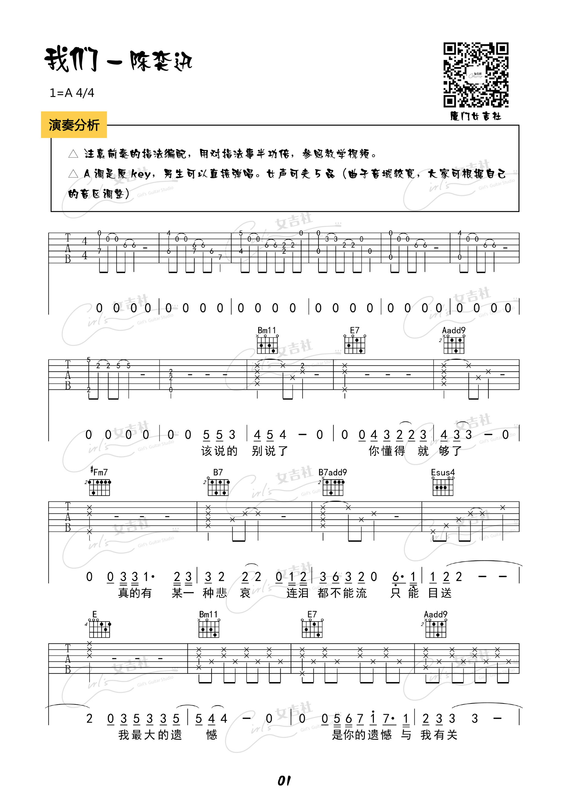 曲谱介绍: 陈奕迅《我们》吉他弹唱谱,采用A调指法编配,共有3张高清图谱。