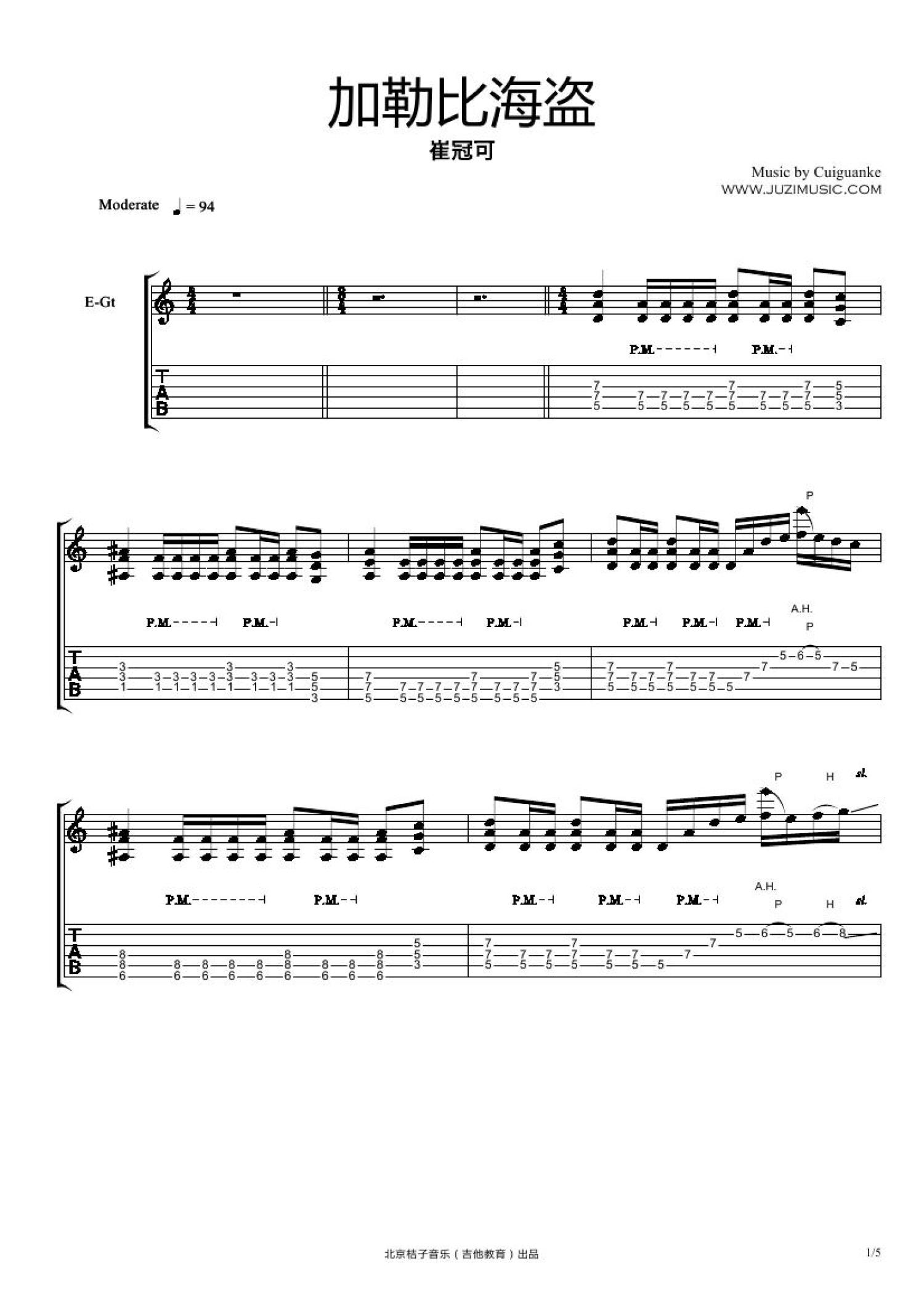 曲谱介绍: 崔冠可《加勒比海盗》吉他谱_电吉他谱
