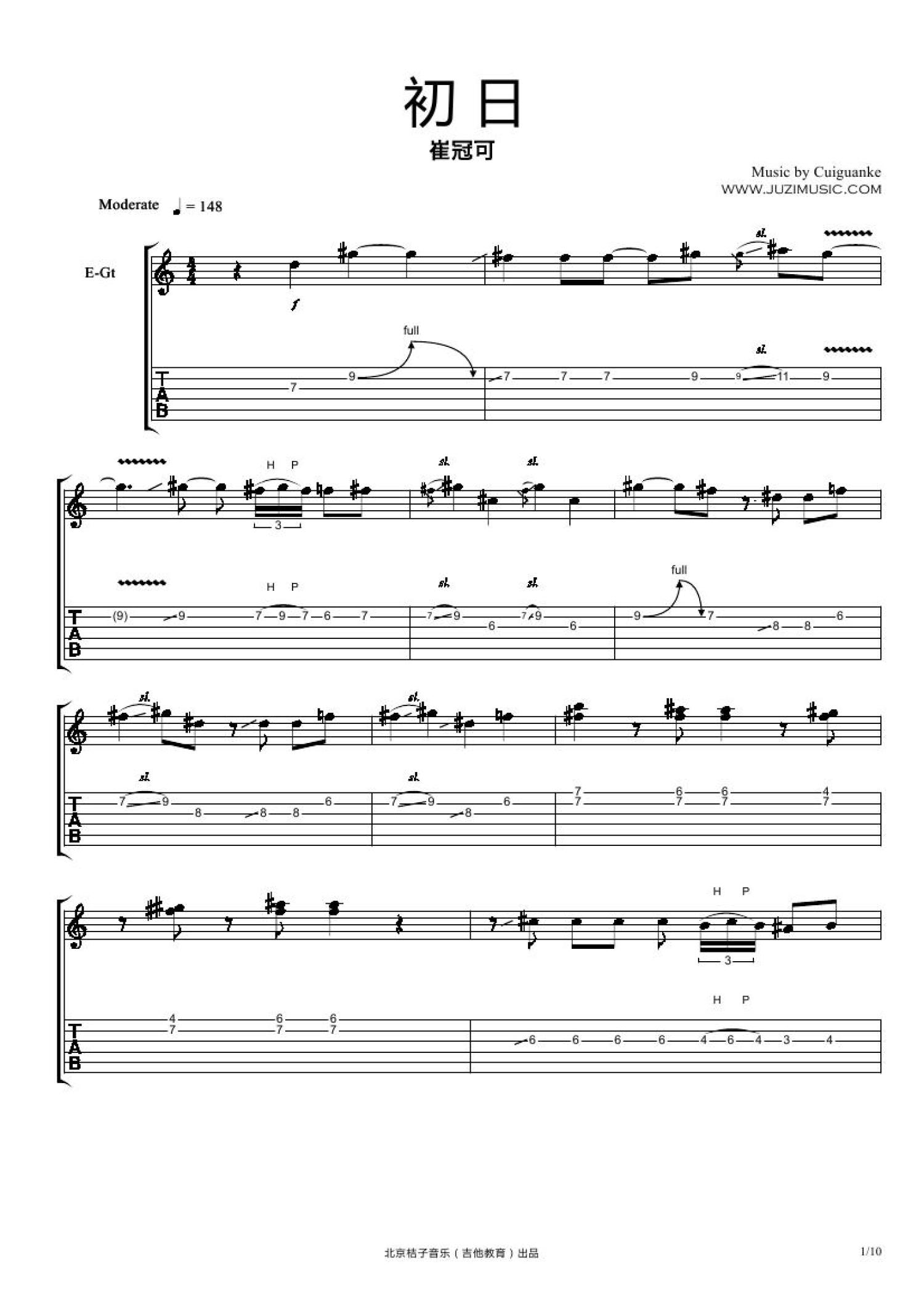 曲谱介绍: 崔冠可《初日》吉他谱_电吉他谱