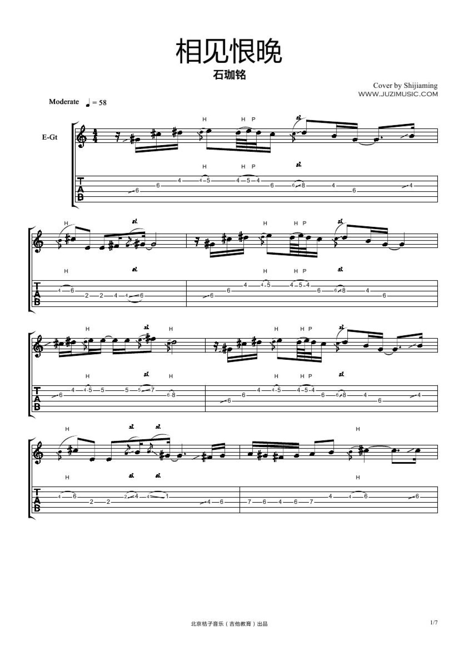 曲谱介绍: 石珈铭《相见恨晚》吉他谱_电吉他谱