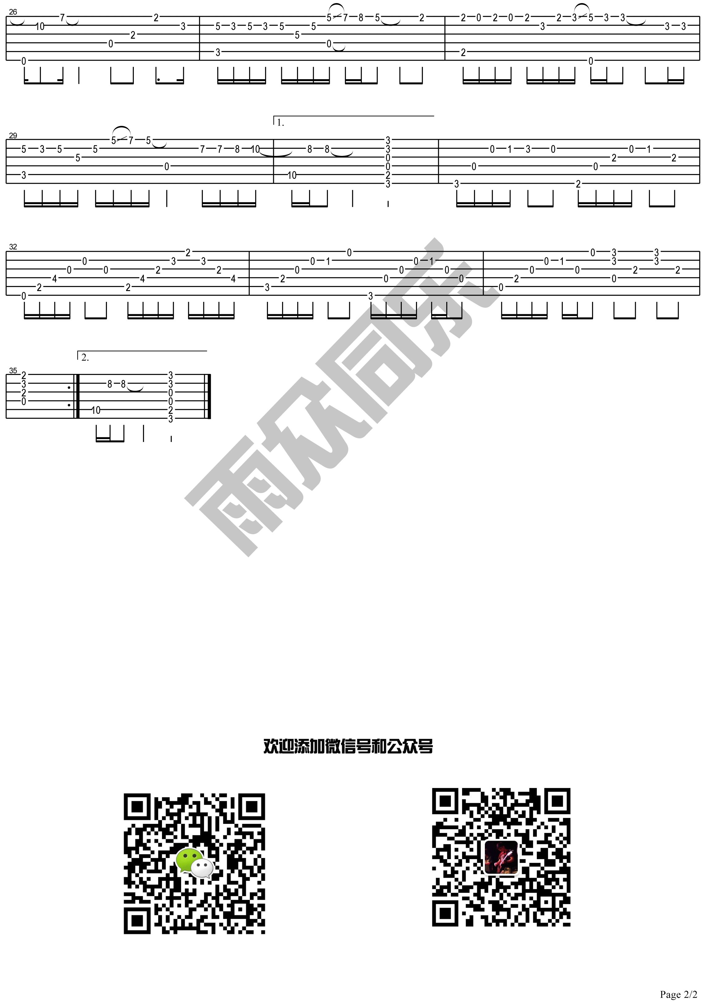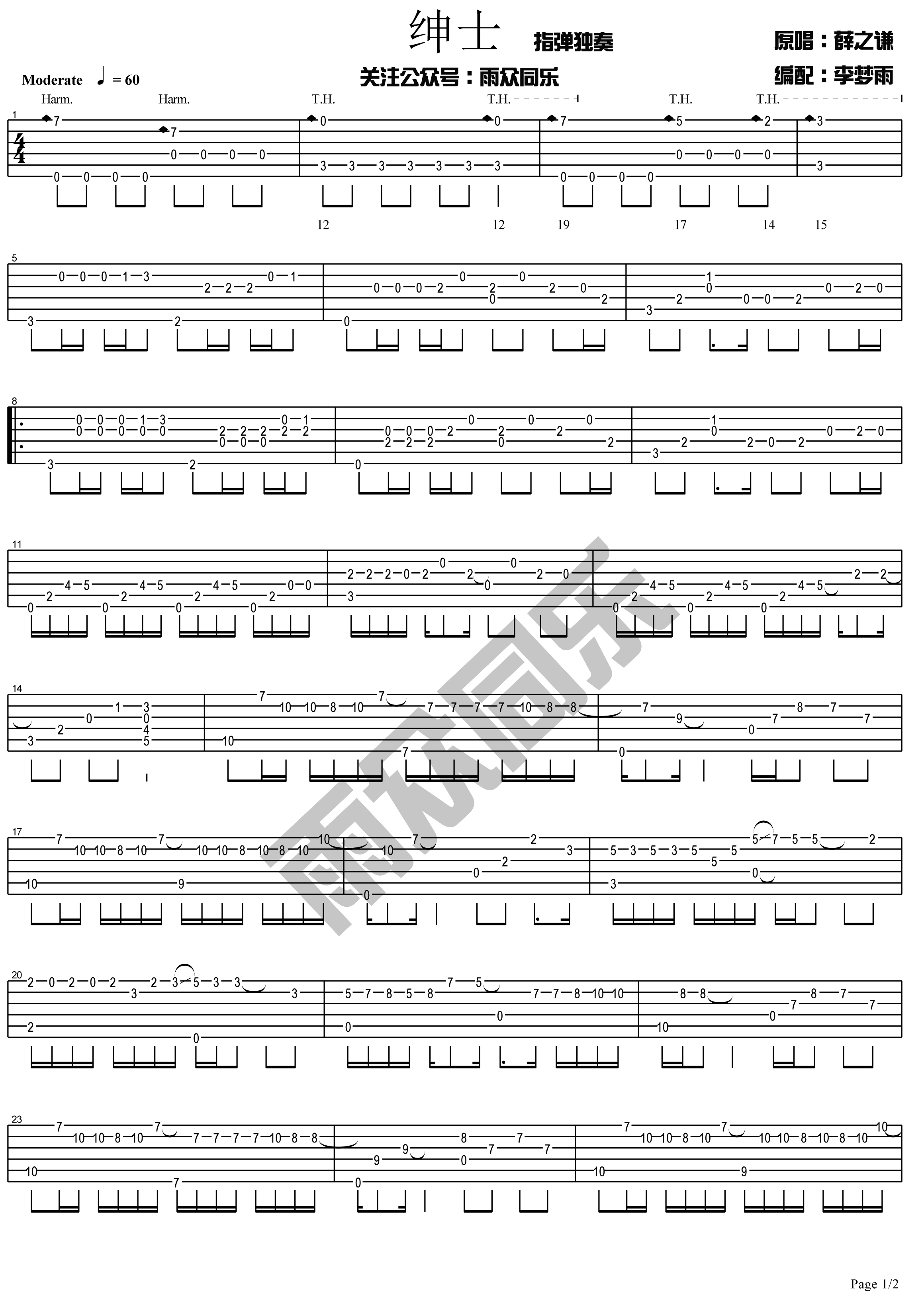 曲谱介绍: 薛之谦《绅士》吉他独奏谱,共有2张高清图谱,免翻页排版设计。