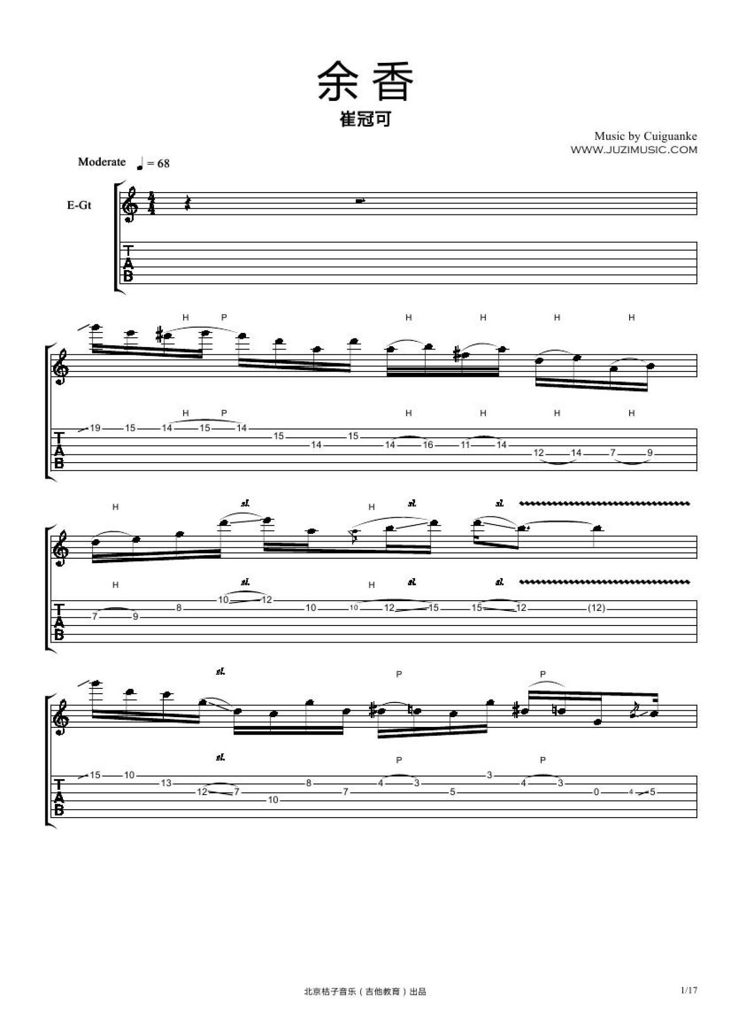 曲谱介绍: 崔冠可《余香》吉他谱_电吉他谱