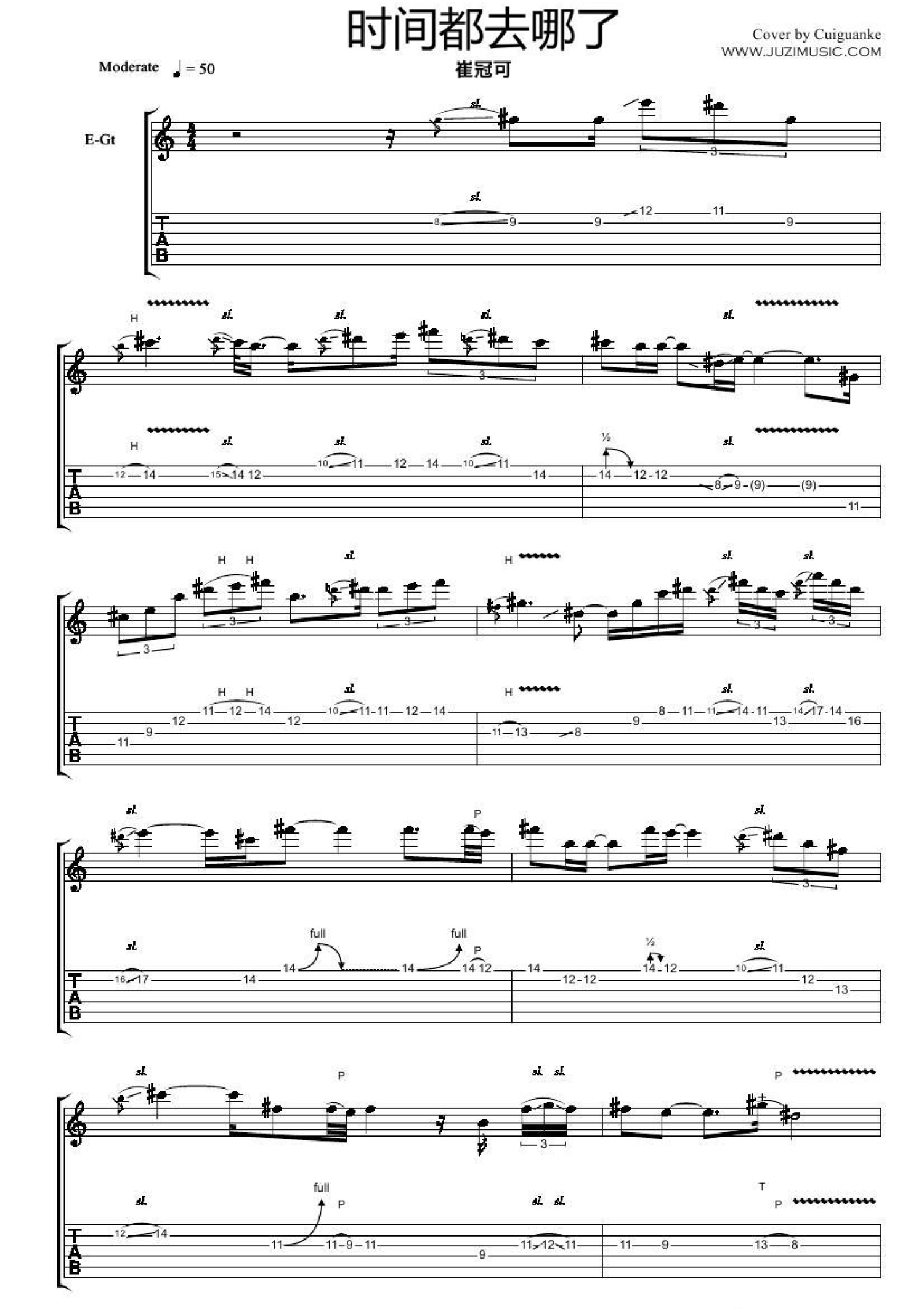 曲谱介绍: 崔冠可《时间都去哪了》吉他谱_电吉他谱