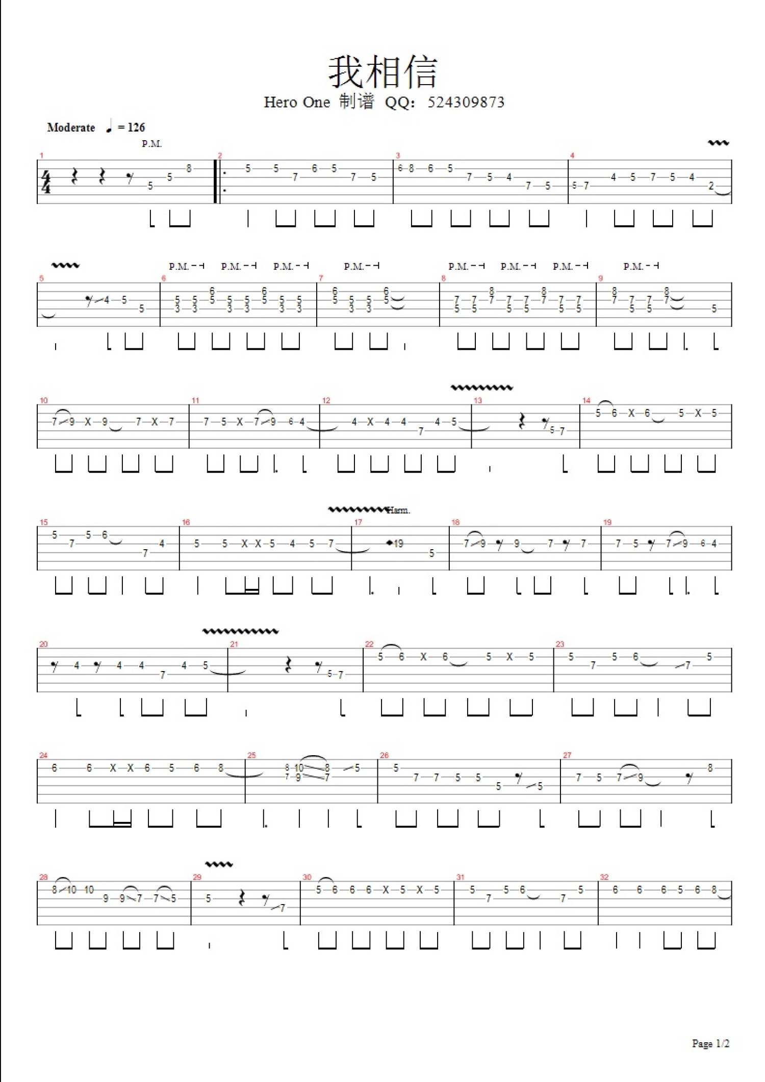 曲谱介绍: 《我相信》吉他谱_电吉他谱_咏改编版本