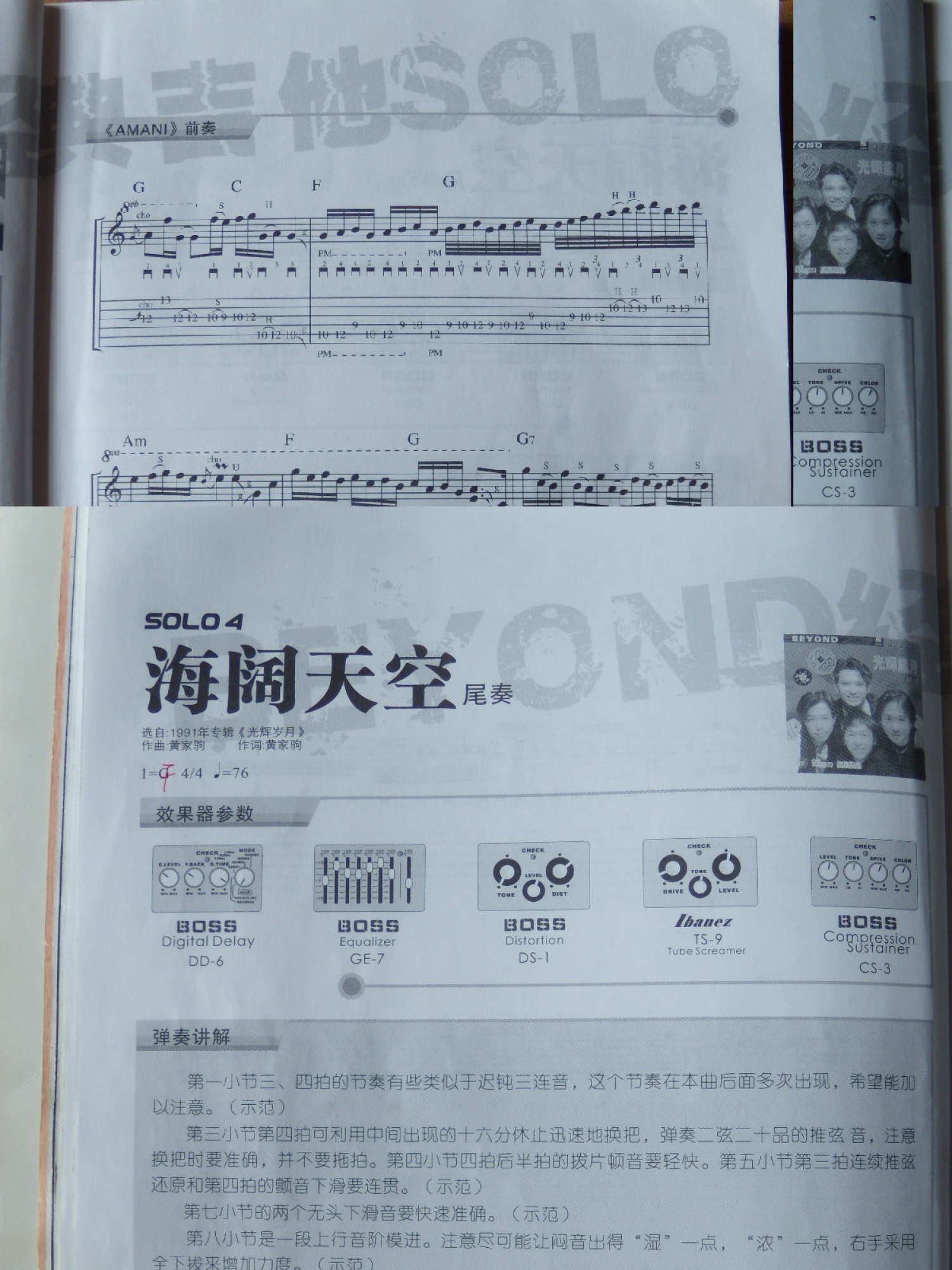 曲谱介绍: Beyond《海阔天空SOLO尾奏》吉他谱_电吉他谱_余晓维SOLO电吉他教学版本