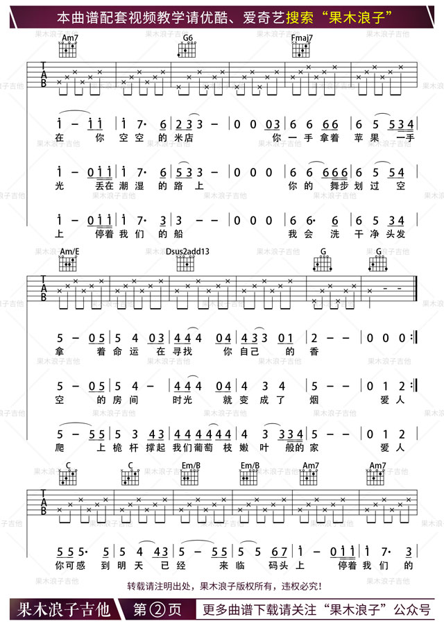 当前位置:琴谱网>吉他弹唱>米店