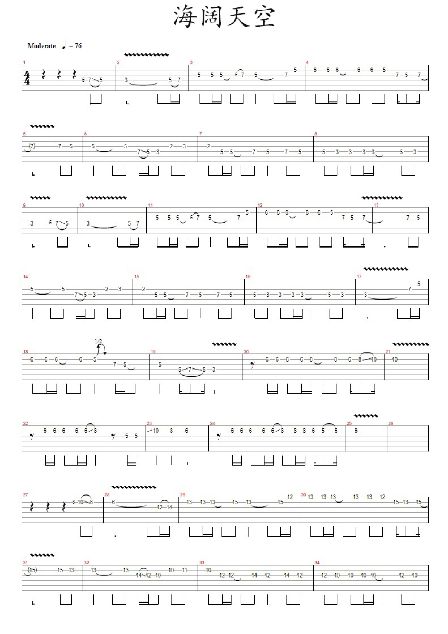 曲谱介绍: BEYOND《海阔天空》吉他谱_电吉他谱_浪子峰改编版