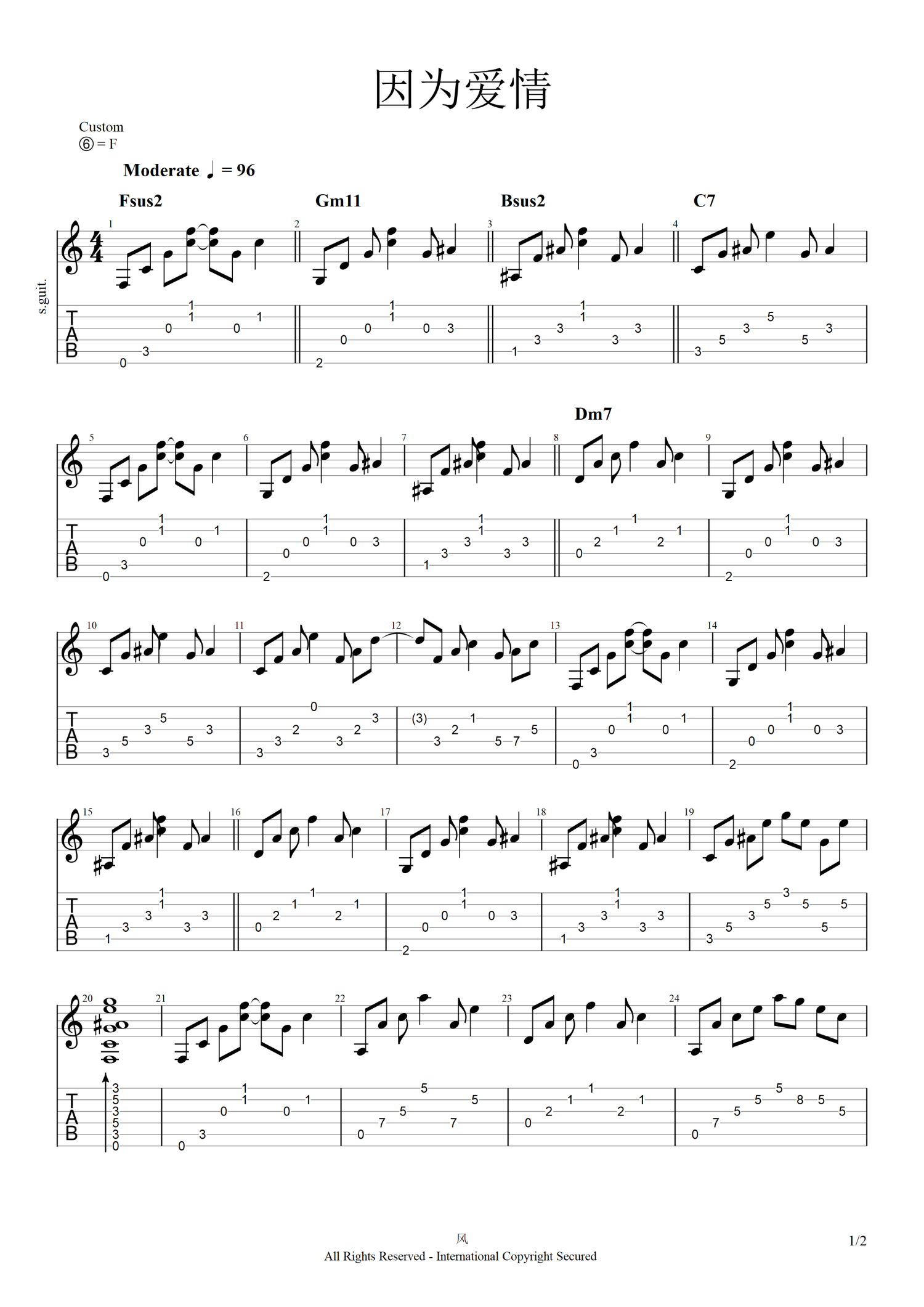 曲谱介绍: 崔冠可《因为爱情》吉他谱_电吉他谱