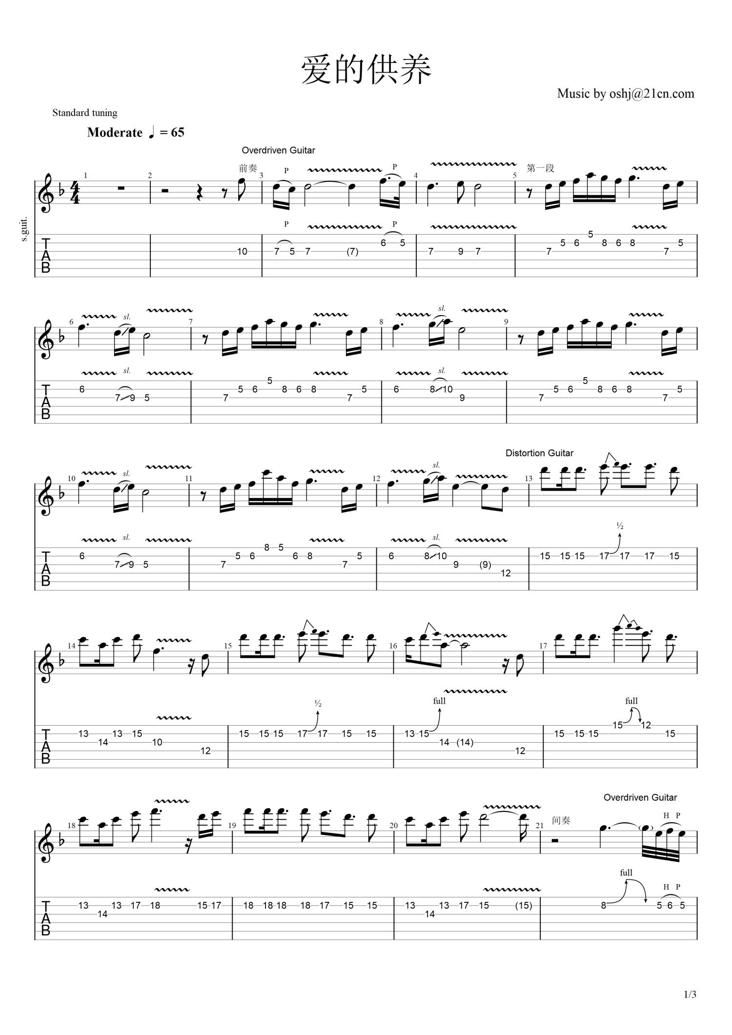 当前位置:琴谱网>电吉他谱>爱的供养