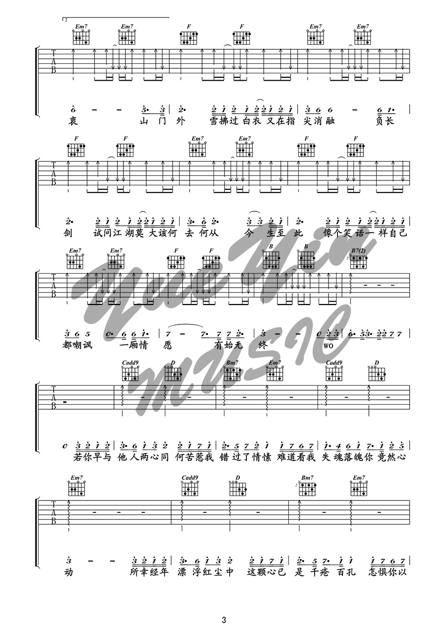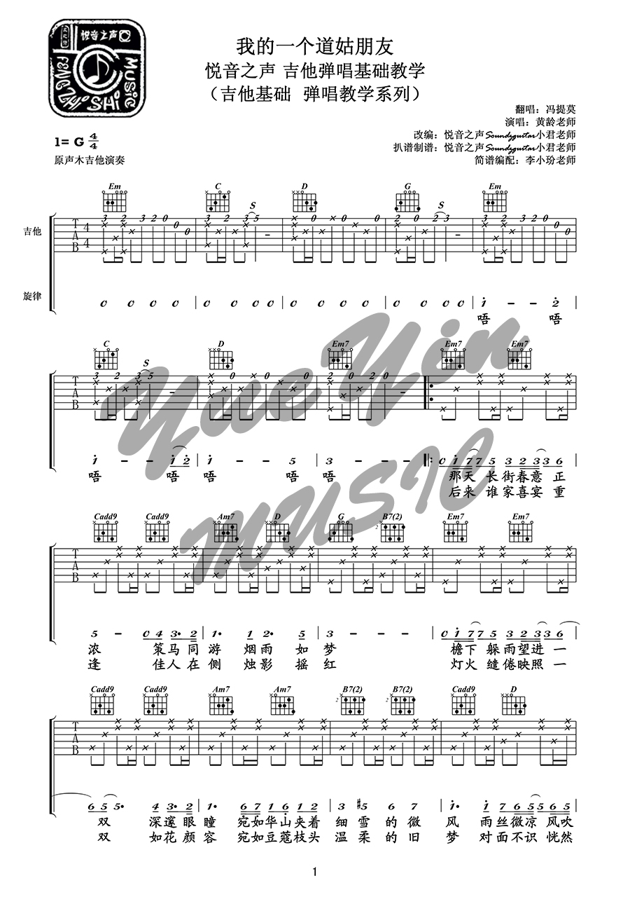 曲谱介绍: 冯提莫《我的一个道姑朋友》吉他弹唱谱,采用G调指法编配,共有5张高清图谱。