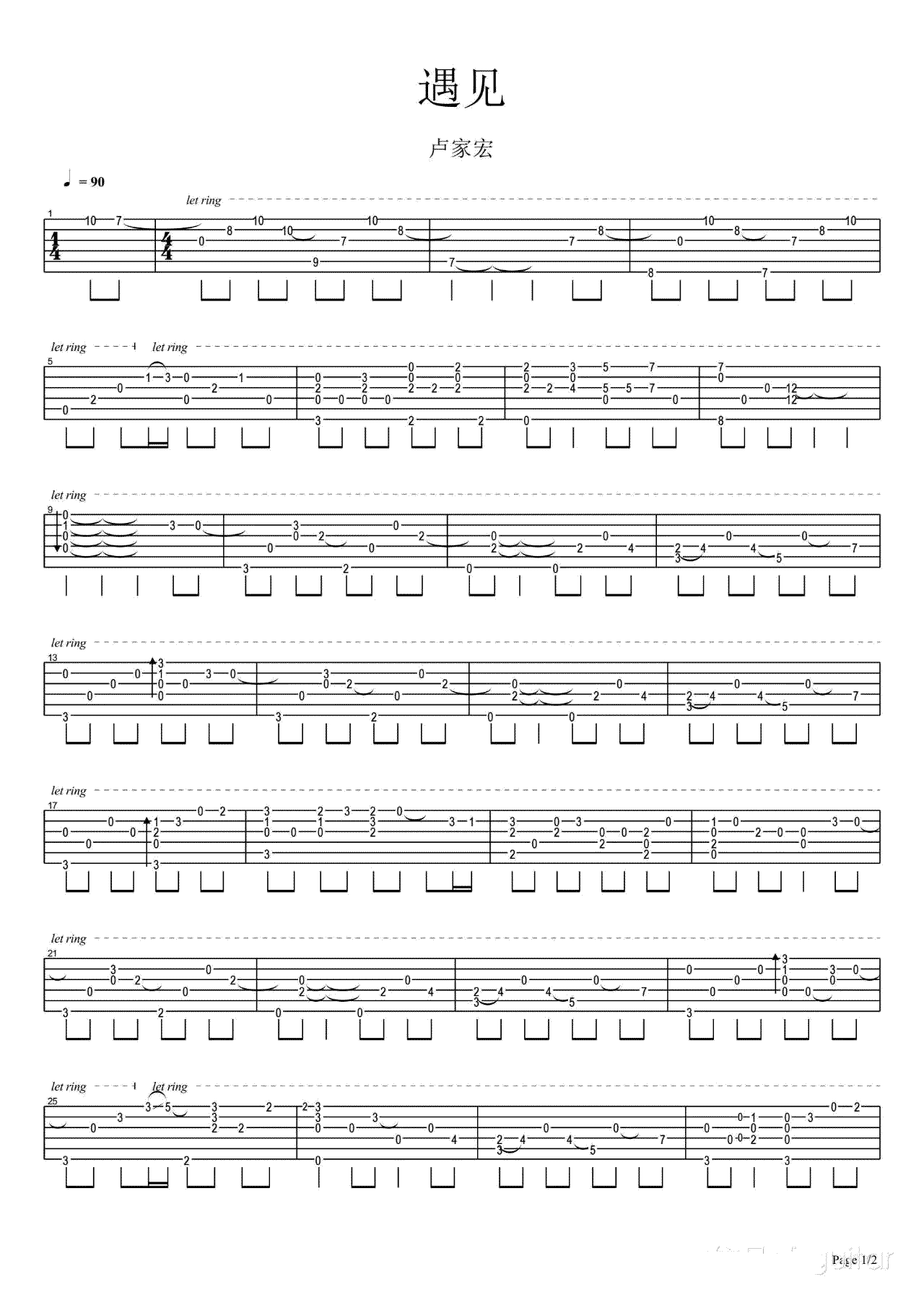 遇见吉他谱 - 卢家宏 - 吉他独奏谱