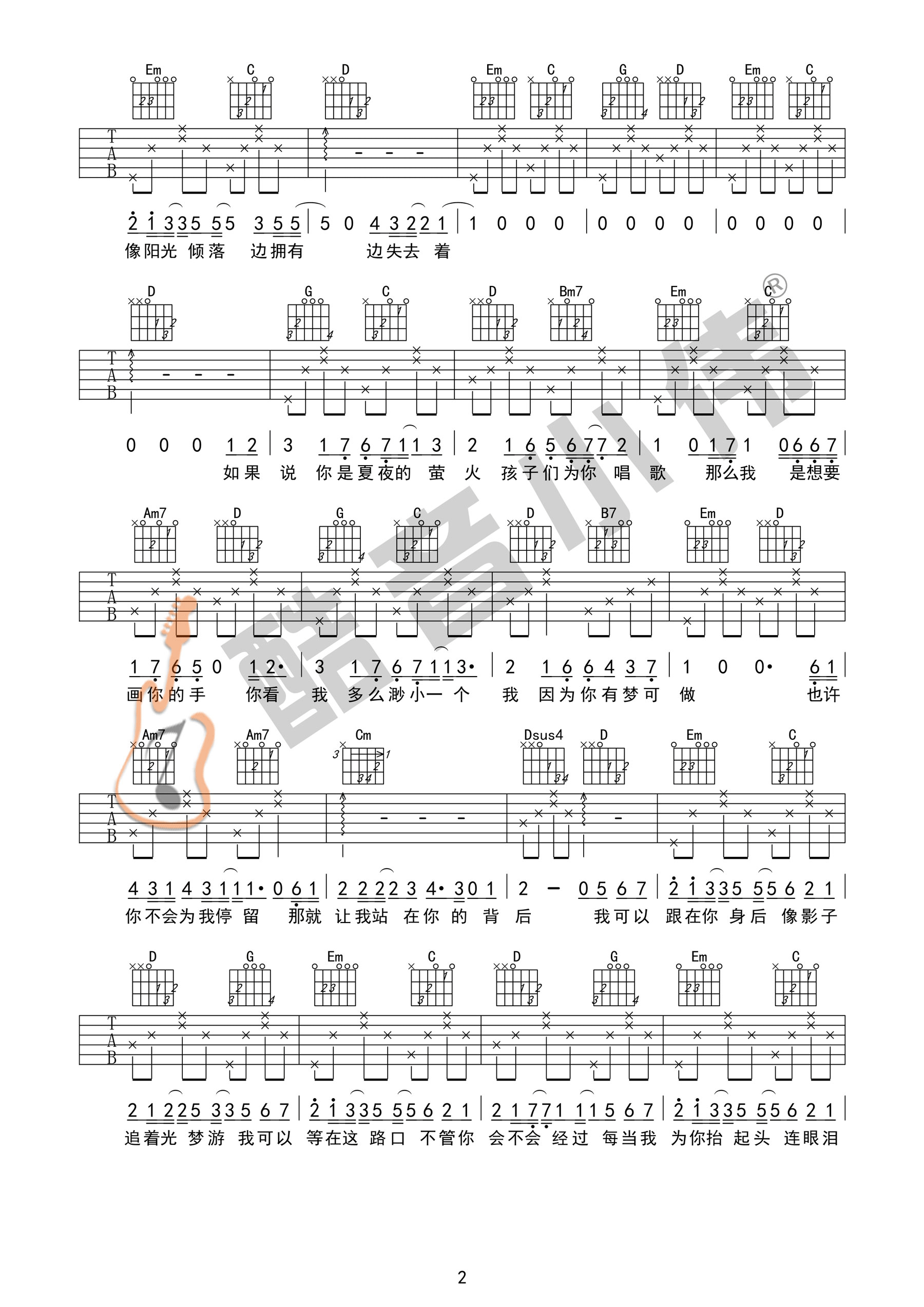 当前位置:琴谱网>吉他弹唱>追光者 简单版