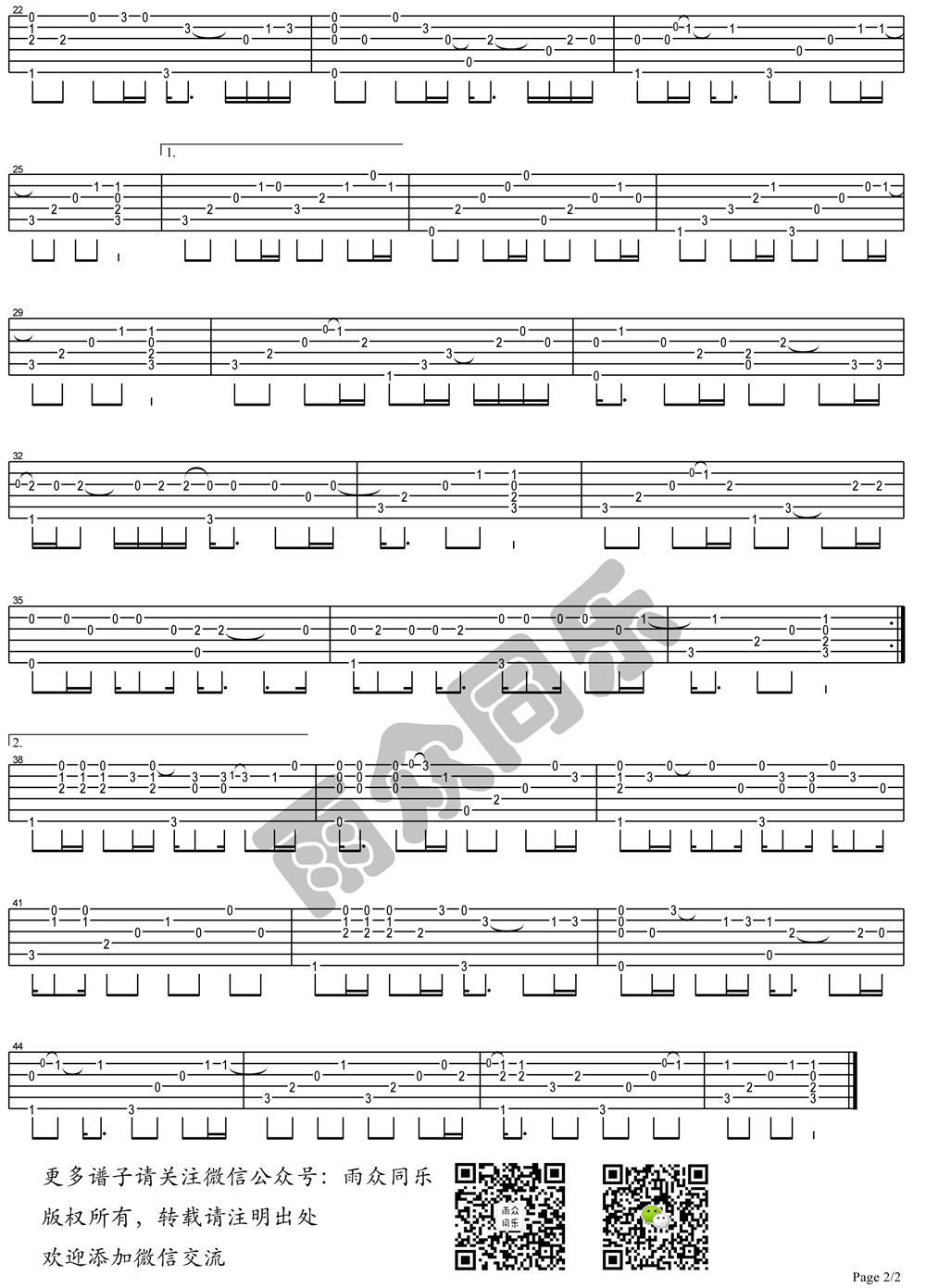 曲谱介绍: 宋冬野《董小姐》吉他独奏谱,共有2张高清图谱,免翻页排版设计。