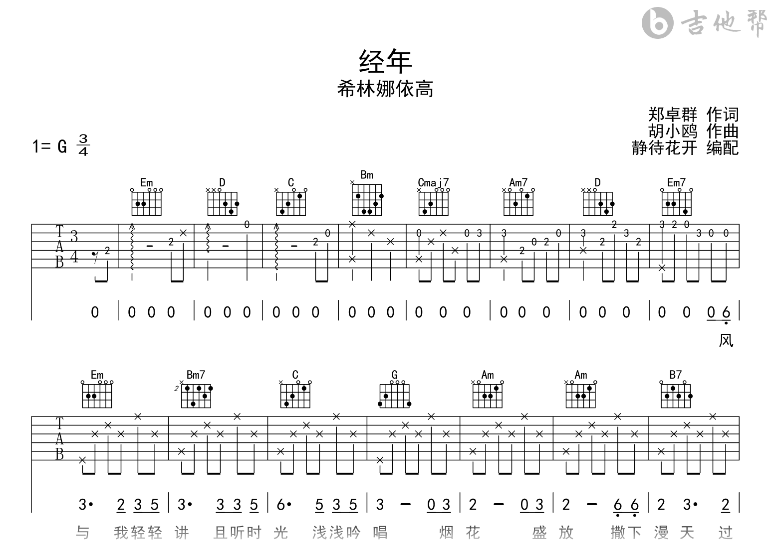 经年吉他谱 - 希林娜依高 - G调吉他弹唱谱