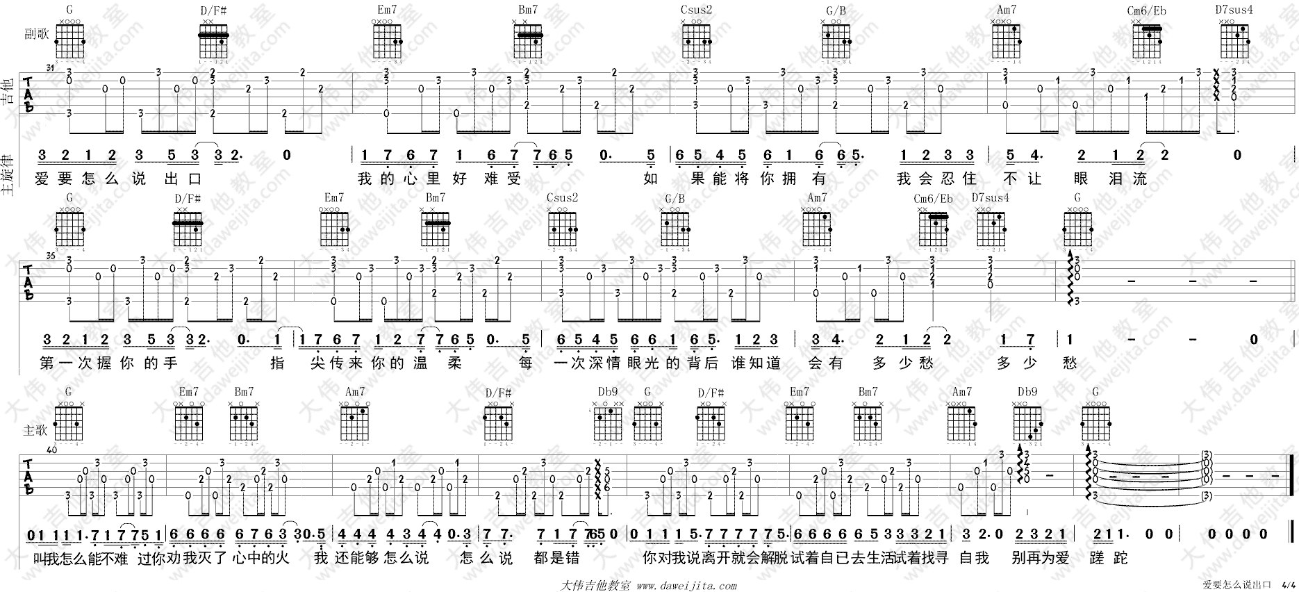 当前位置:琴谱网>吉他弹唱>爱要怎么说出口