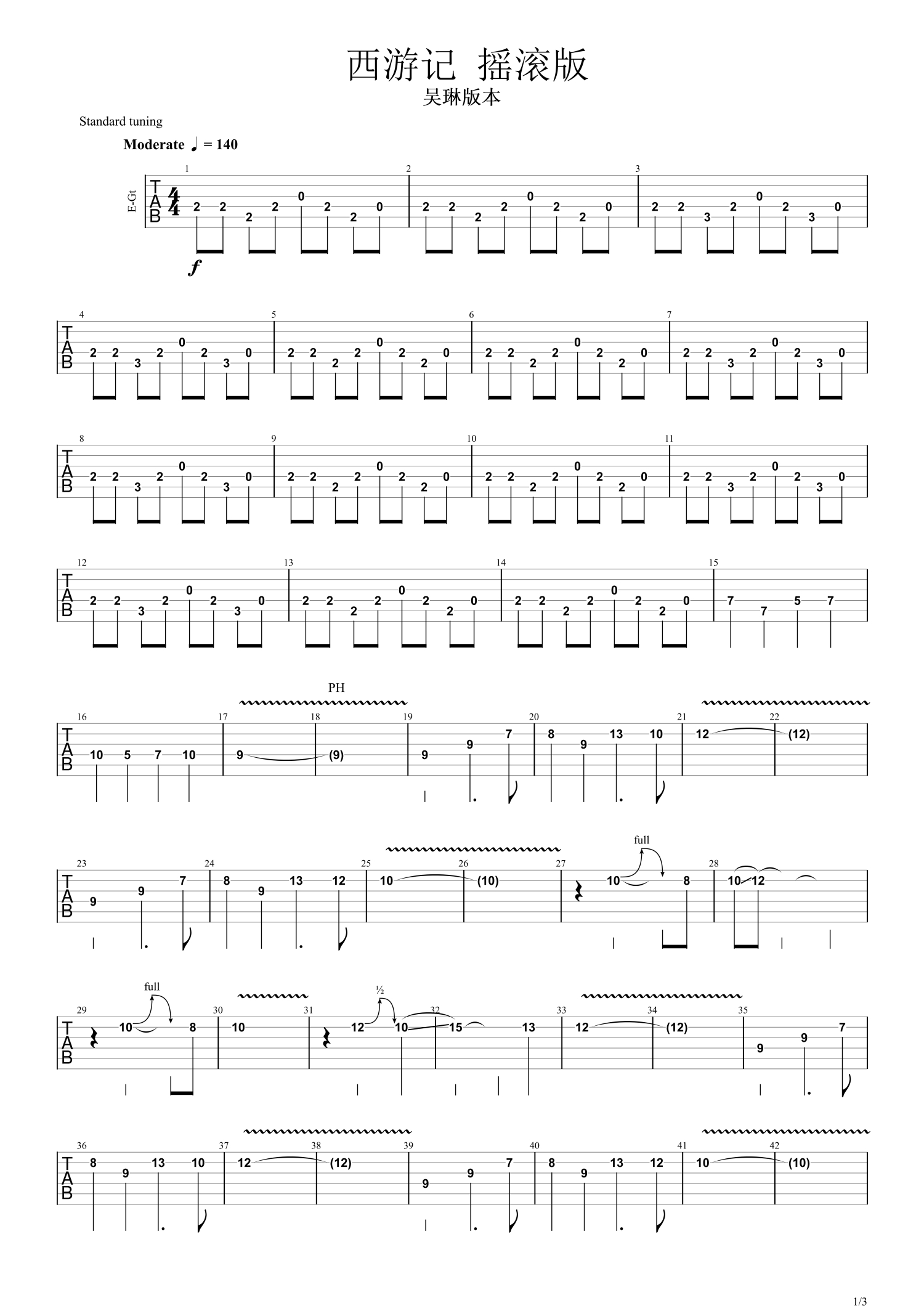 • 西游记吉他谱 - 摇滚版 - 电吉他谱 - 吴琳超HI版本第1张