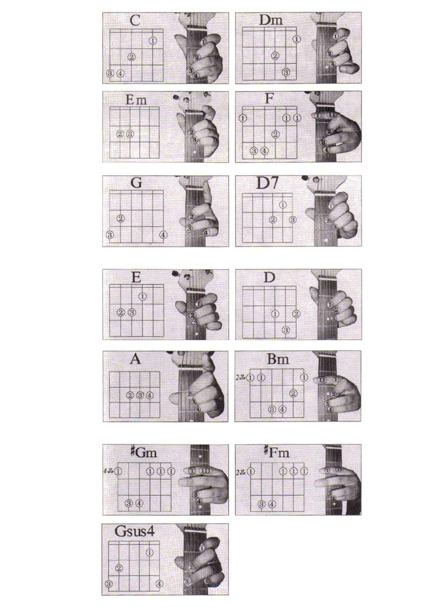 当前位置:琴谱网>吉他教程>常用和弦及指法图