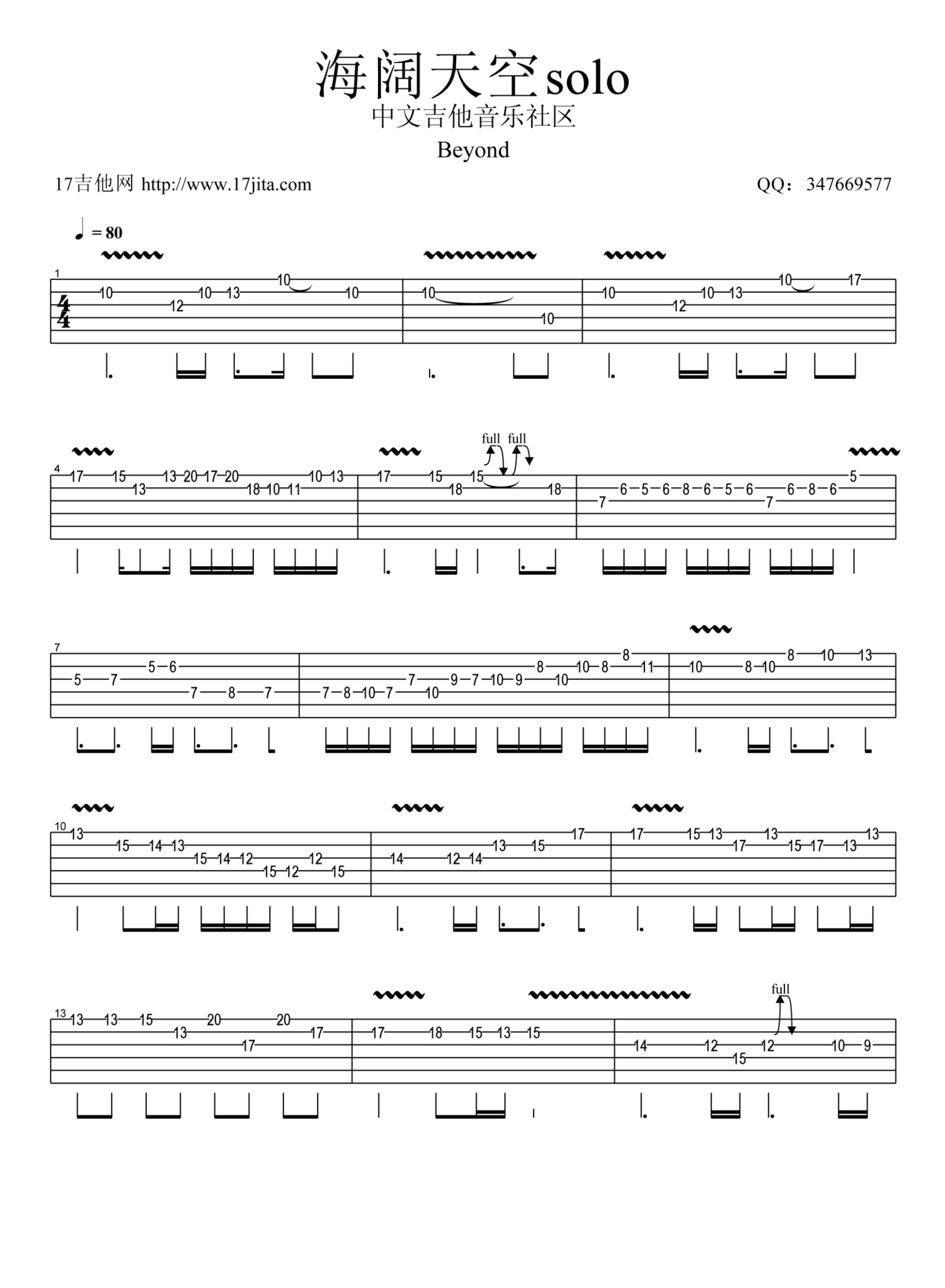 当前位置:琴谱网>电吉他谱>海阔天空solo