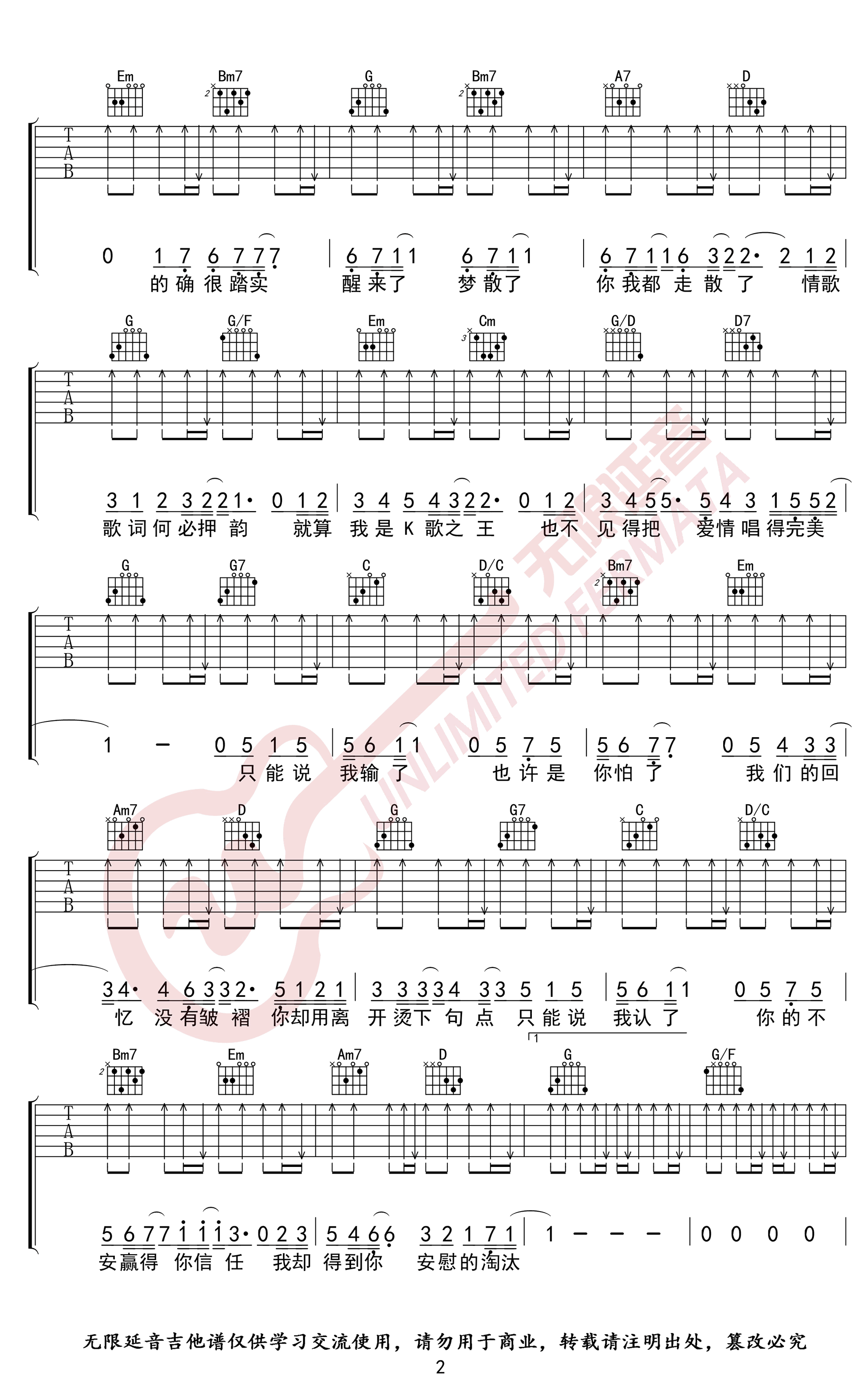 当前位置:琴谱网>吉他弹唱>淘汰
