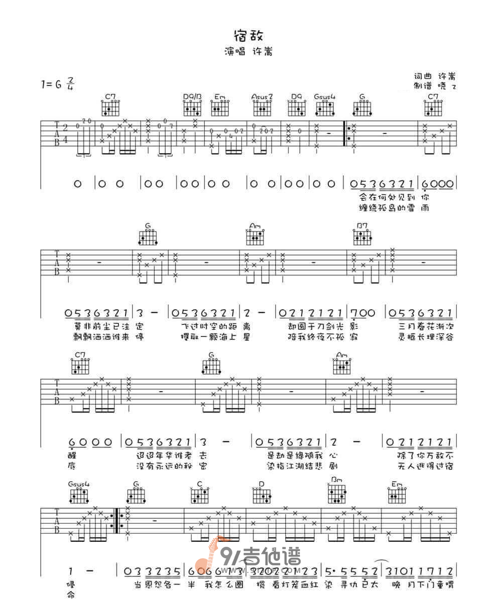 天龙八部之宿敌吉他谱 - 许嵩 - G调吉他弹唱谱 - 原版