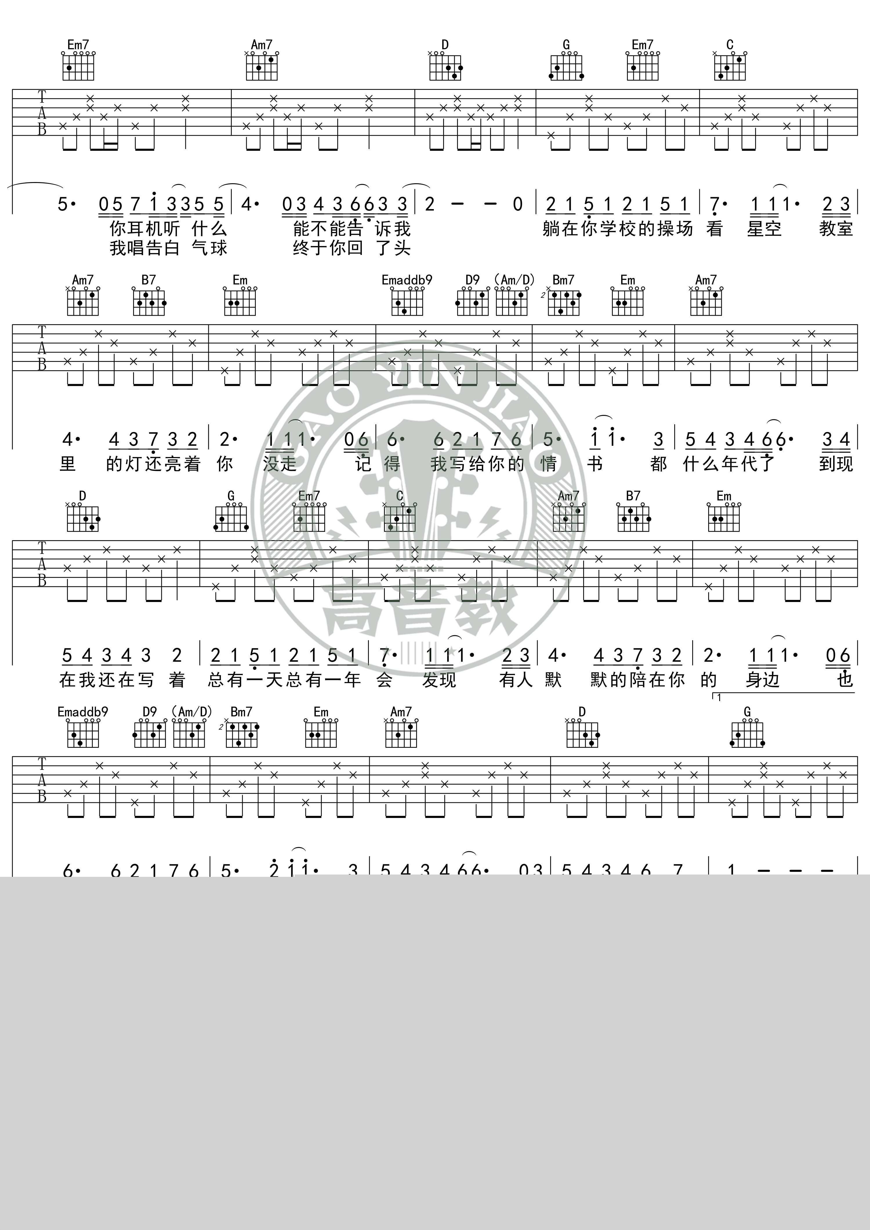 当前位置:琴谱网>吉他弹唱>等你下课 标准版