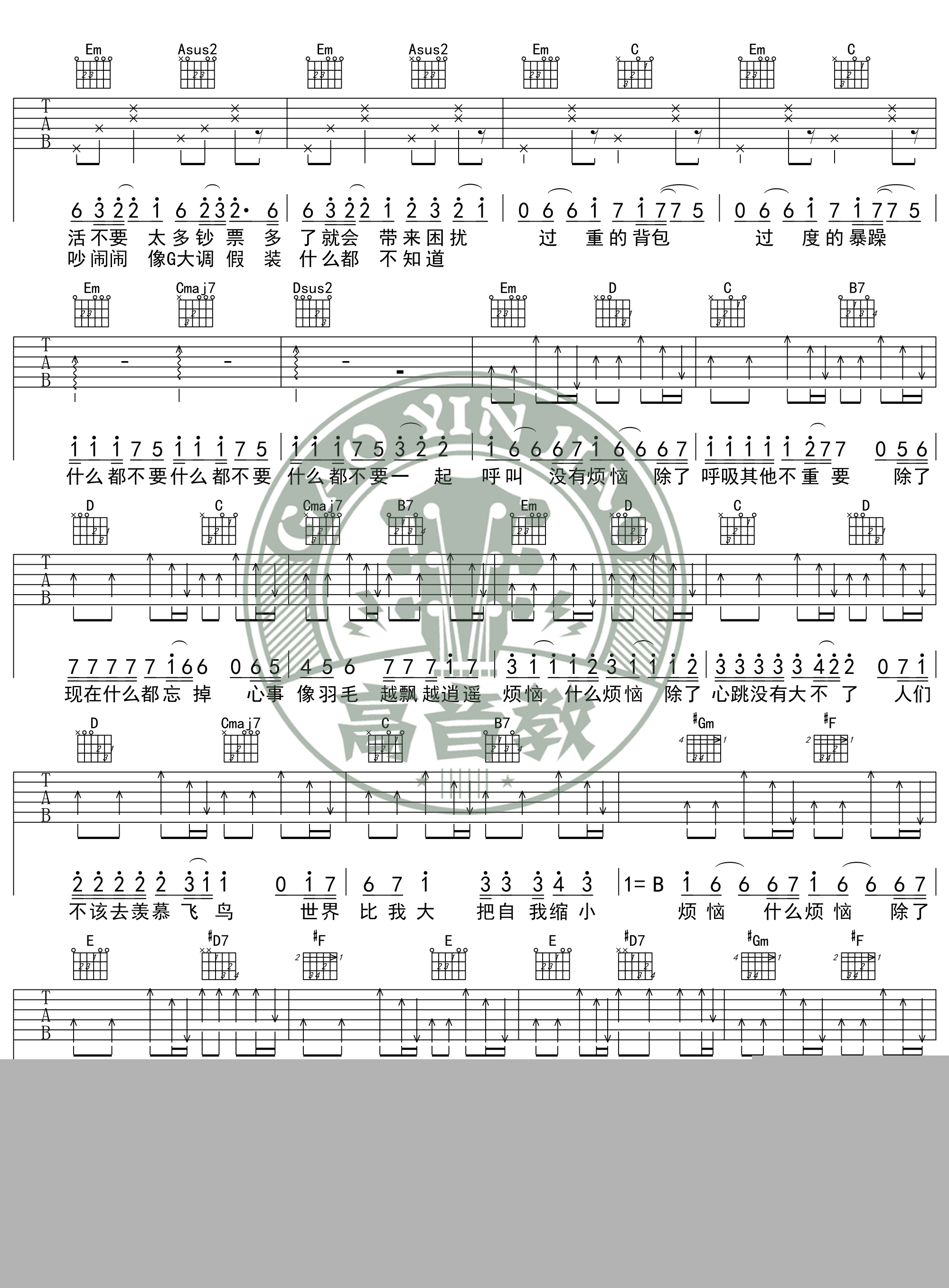 当前位置:琴谱网>吉他弹唱>烦恼歌