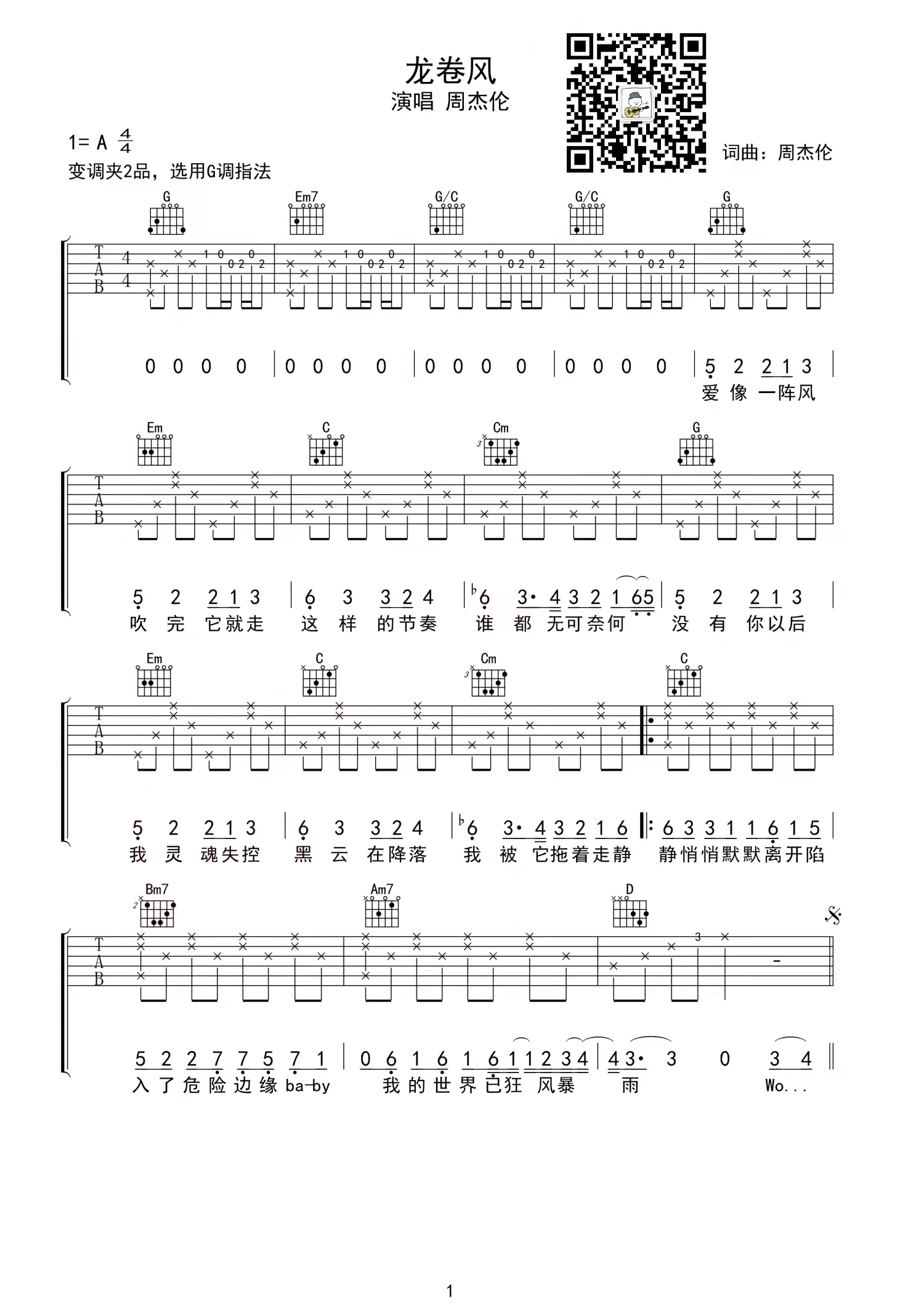 龙卷风吉他谱 - 周杰伦 - G调吉他弹唱谱