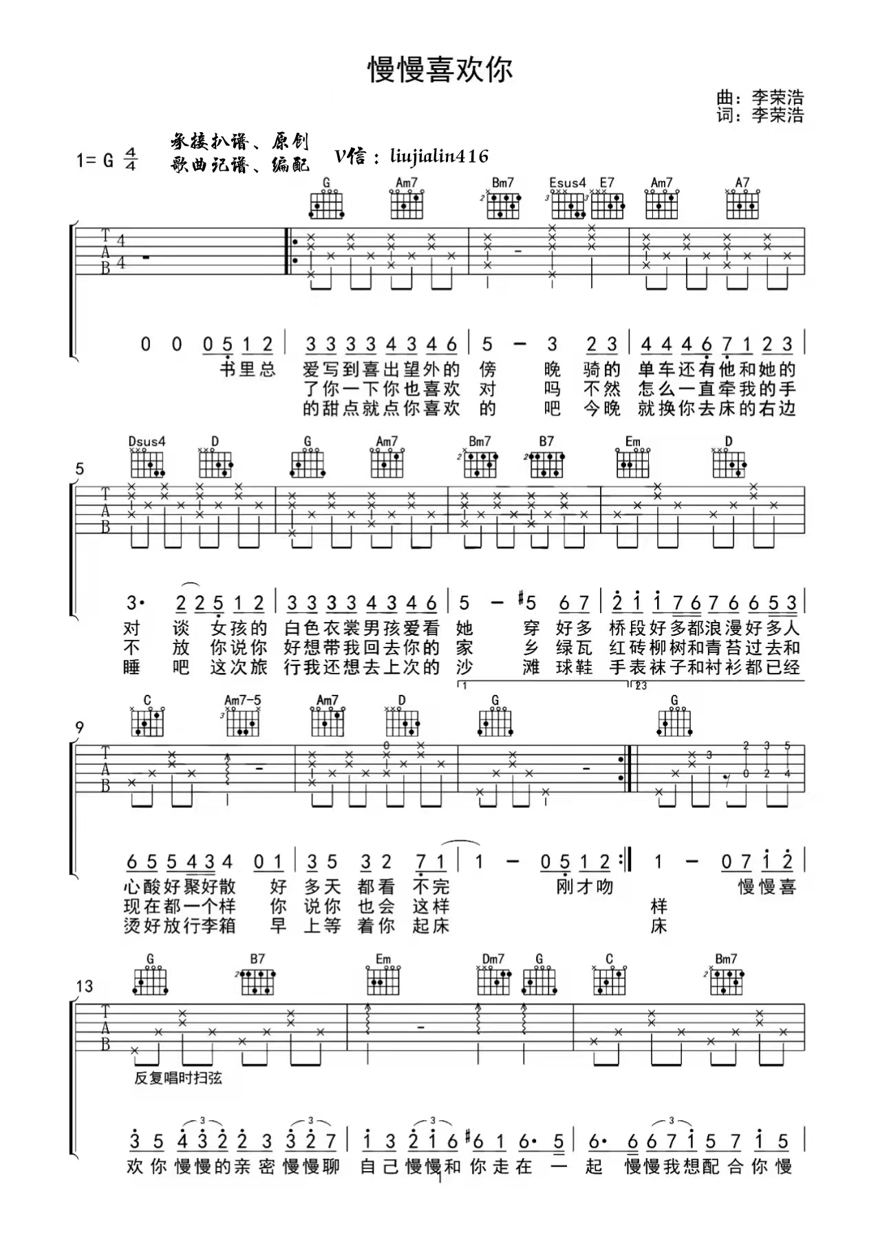 当前位置:琴谱网>吉他弹唱>慢慢喜欢你