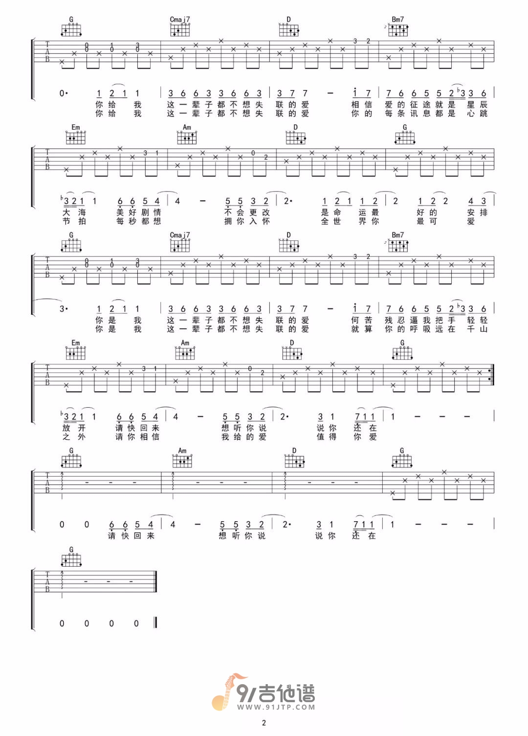 当前位置:琴谱网>吉他弹唱>永不失联的爱