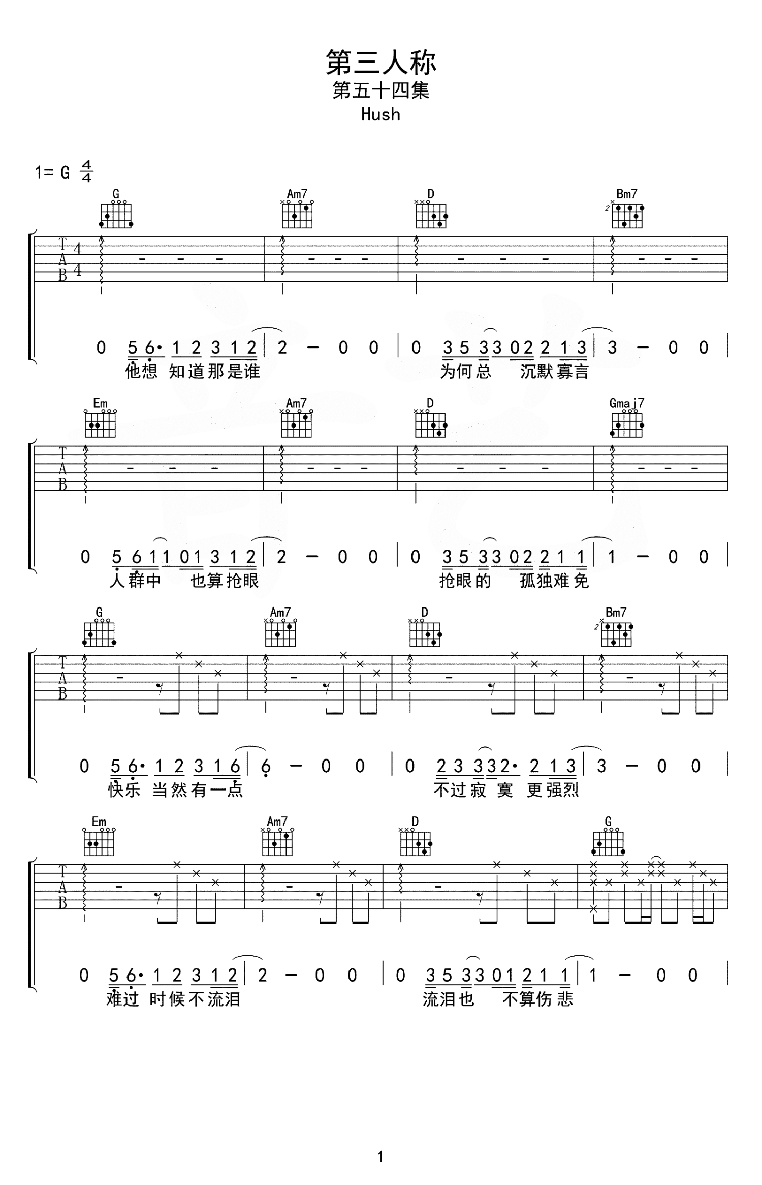 第三人称吉他谱 - Hush - G调吉他弹唱谱