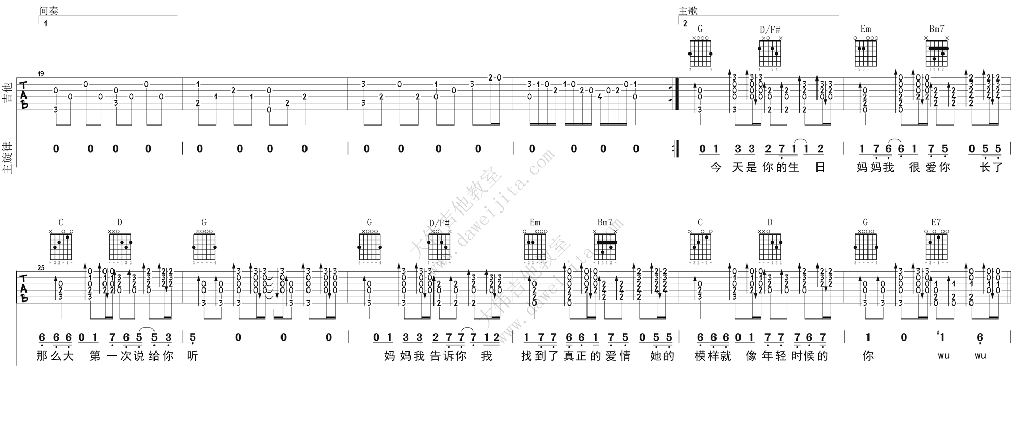当前位置:琴谱网>吉他弹唱>今天是你的生日妈妈