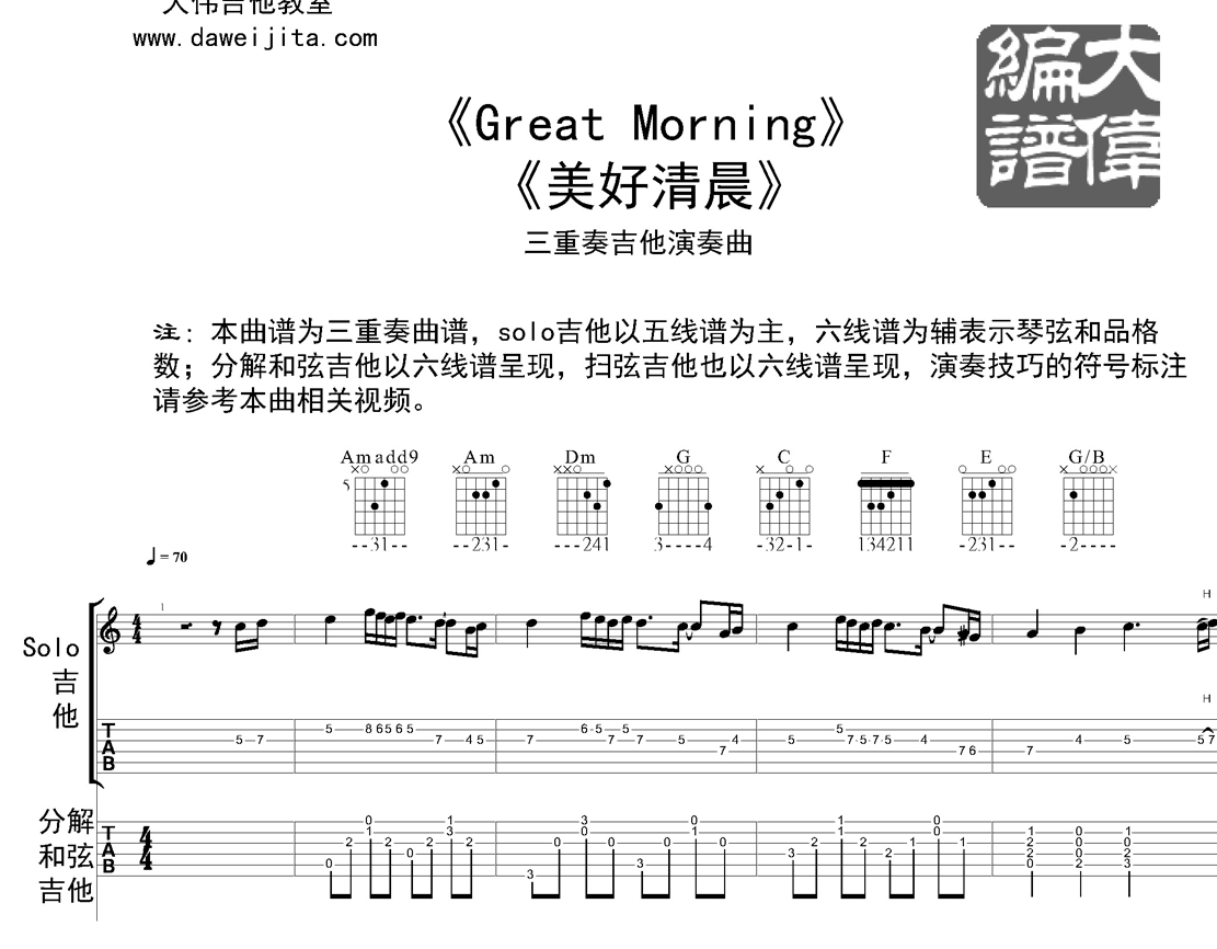Great Morning吉他谱 - Daveed - 吉他独奏谱
