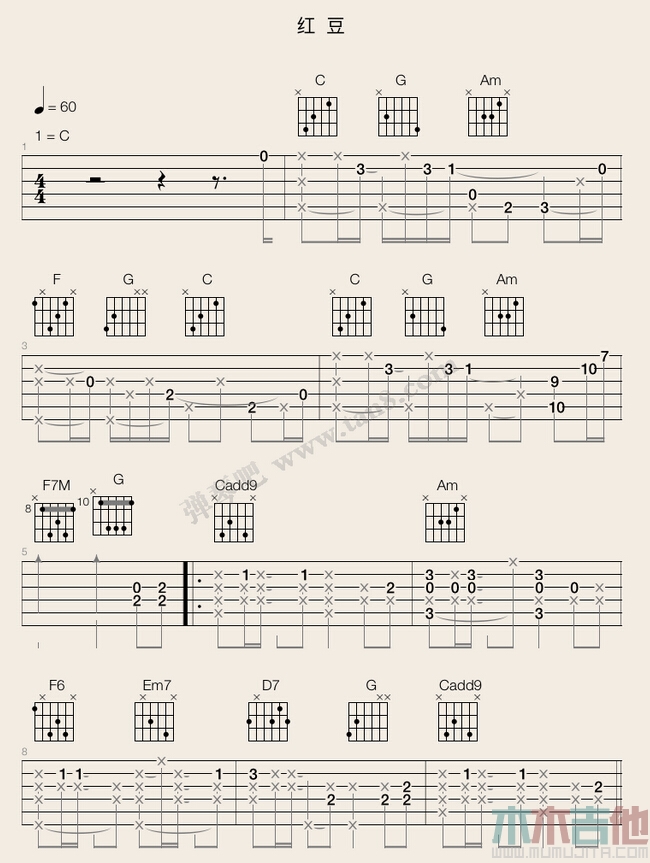 红豆吉他谱 - 王菲 - 吉他独奏谱