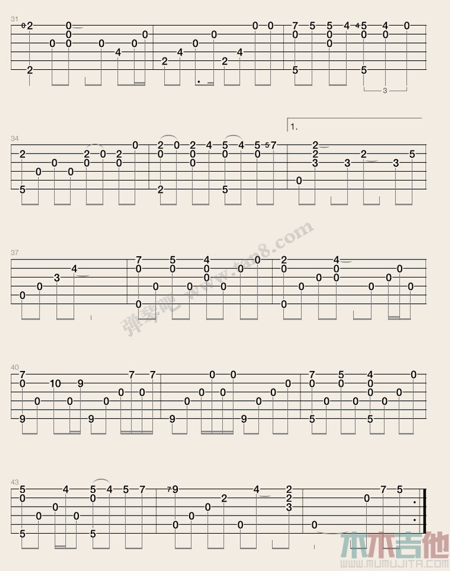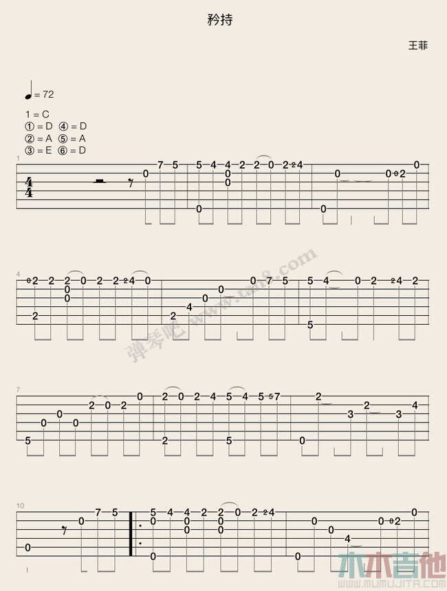 矜持吉他谱 - 王菲 - 吉他独奏谱