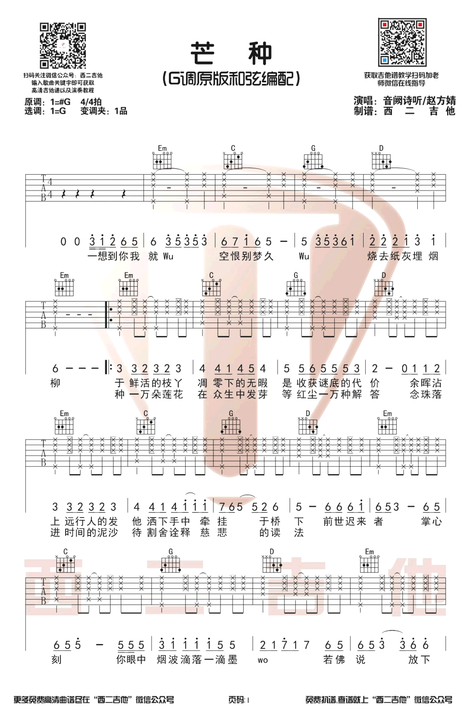 芒种吉他谱 - 音阙诗听/赵方婧 - G调吉他弹唱谱