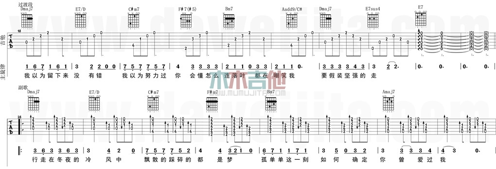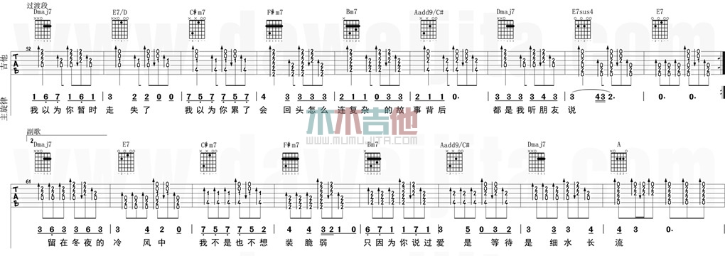 当前位置:琴谱网>吉他弹唱>走在冷风中