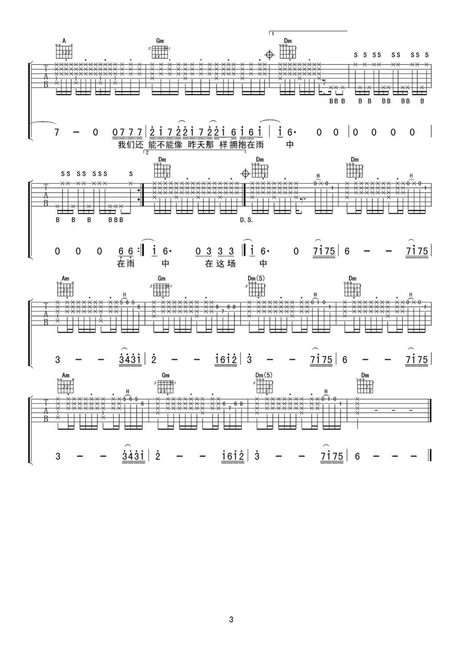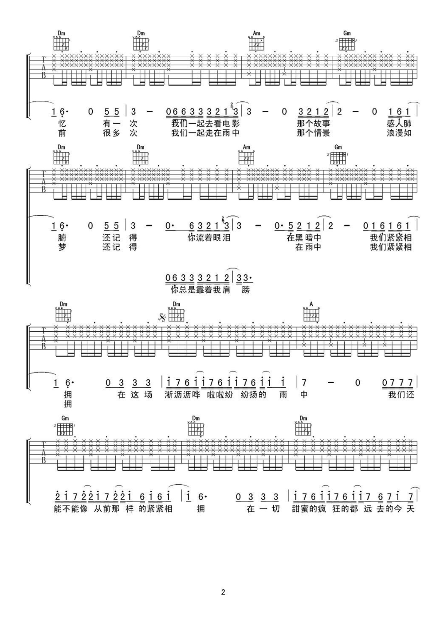 当前位置:琴谱网>吉他弹唱>在雨中