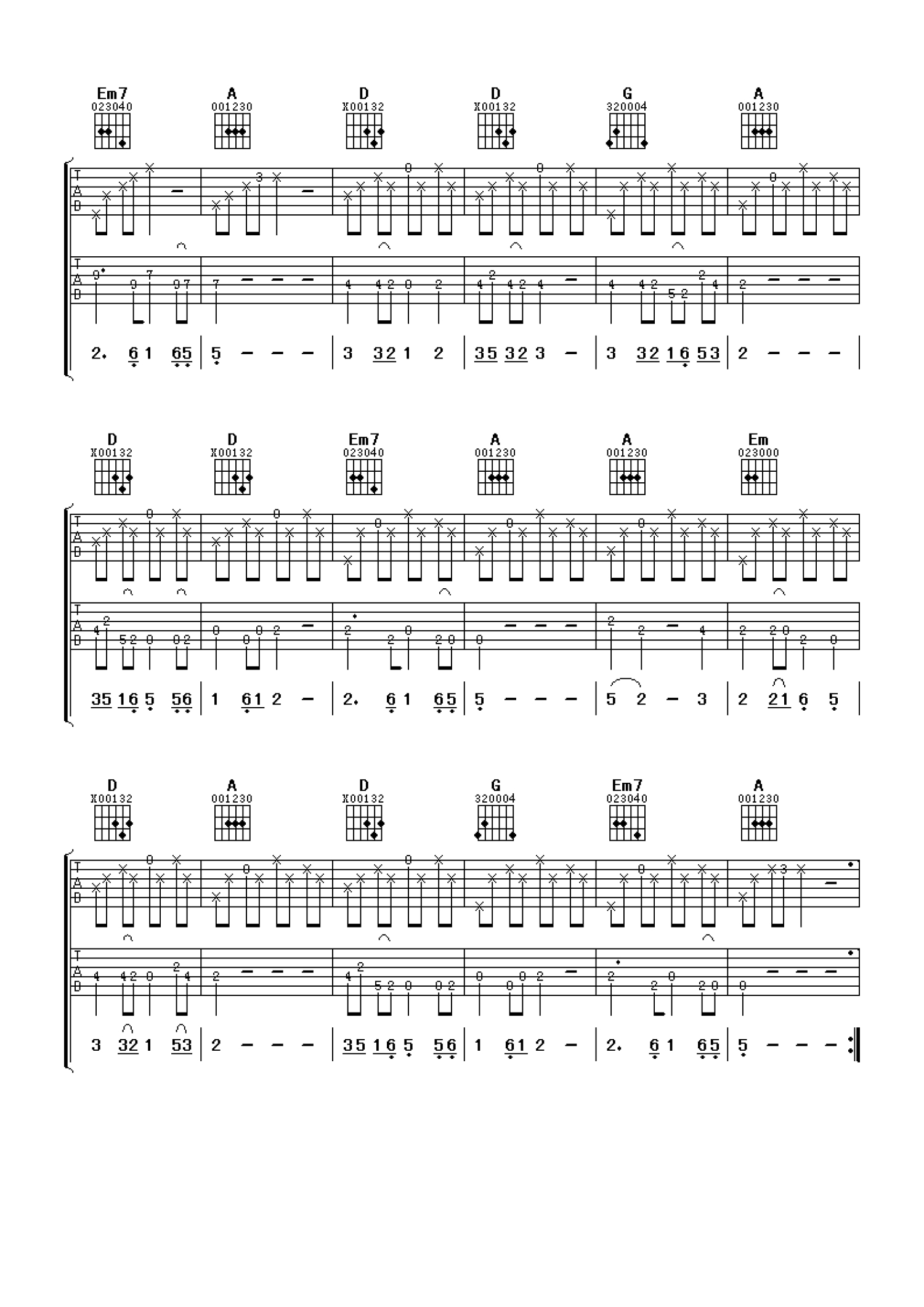 吉他弹唱D调来源:阿潘音乐工场1132 浏览2019-12-07 18:42发布图谱共3页