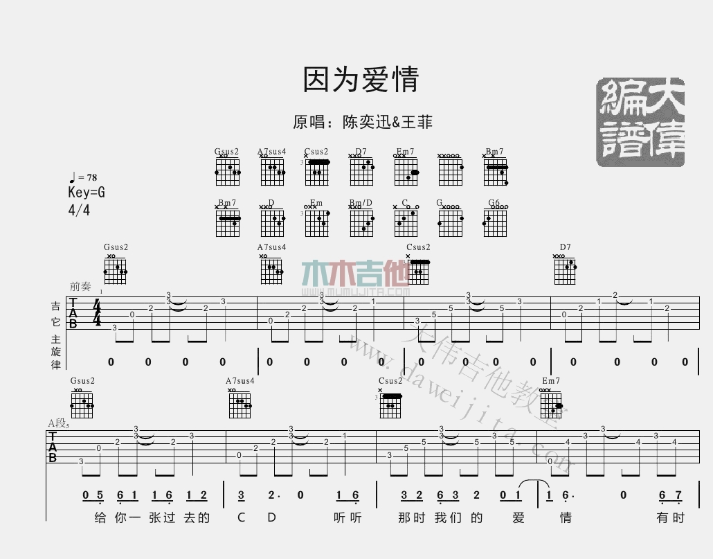 因为爱情吉他谱 - 陈奕迅,王菲 - G调吉他弹唱谱