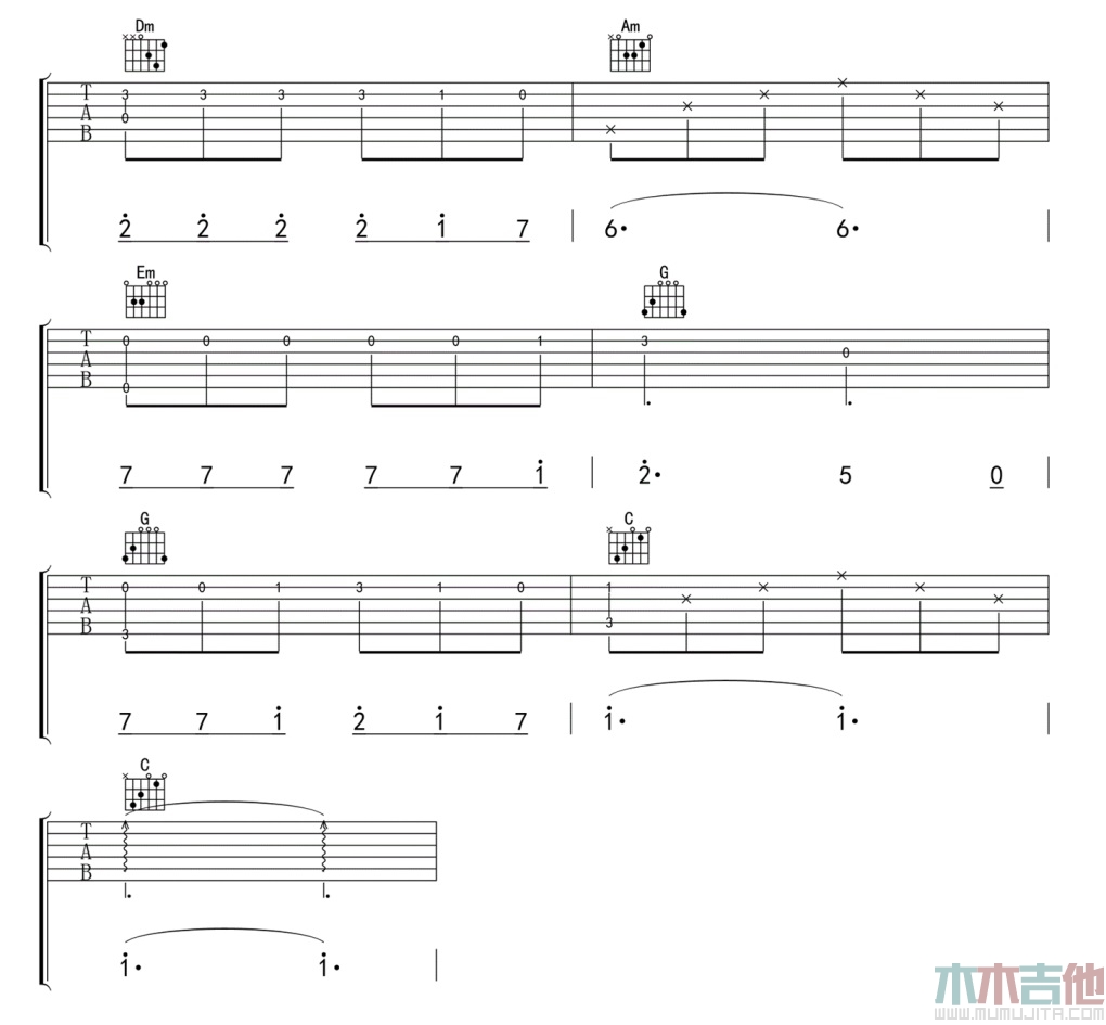 同桌的你吉他谱 - 老狼 - 吉他独奏谱